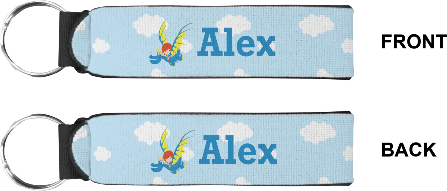 Made from neoprene, these key fob wristlets are comfortable, cushioned, easy to slip on and off; these traits allow it to maintain a slim, yet fashionable appearance, all while optimizing your efficiency. When attaching or removing keys, simply squeeze open the included metal ring. These fobs measure at around 4 inches, and have a bit of a stretch. Thus, they are best suited for small to medium size wrists. If you require a larger size, check out our webbing keychain fob for larger sizing.