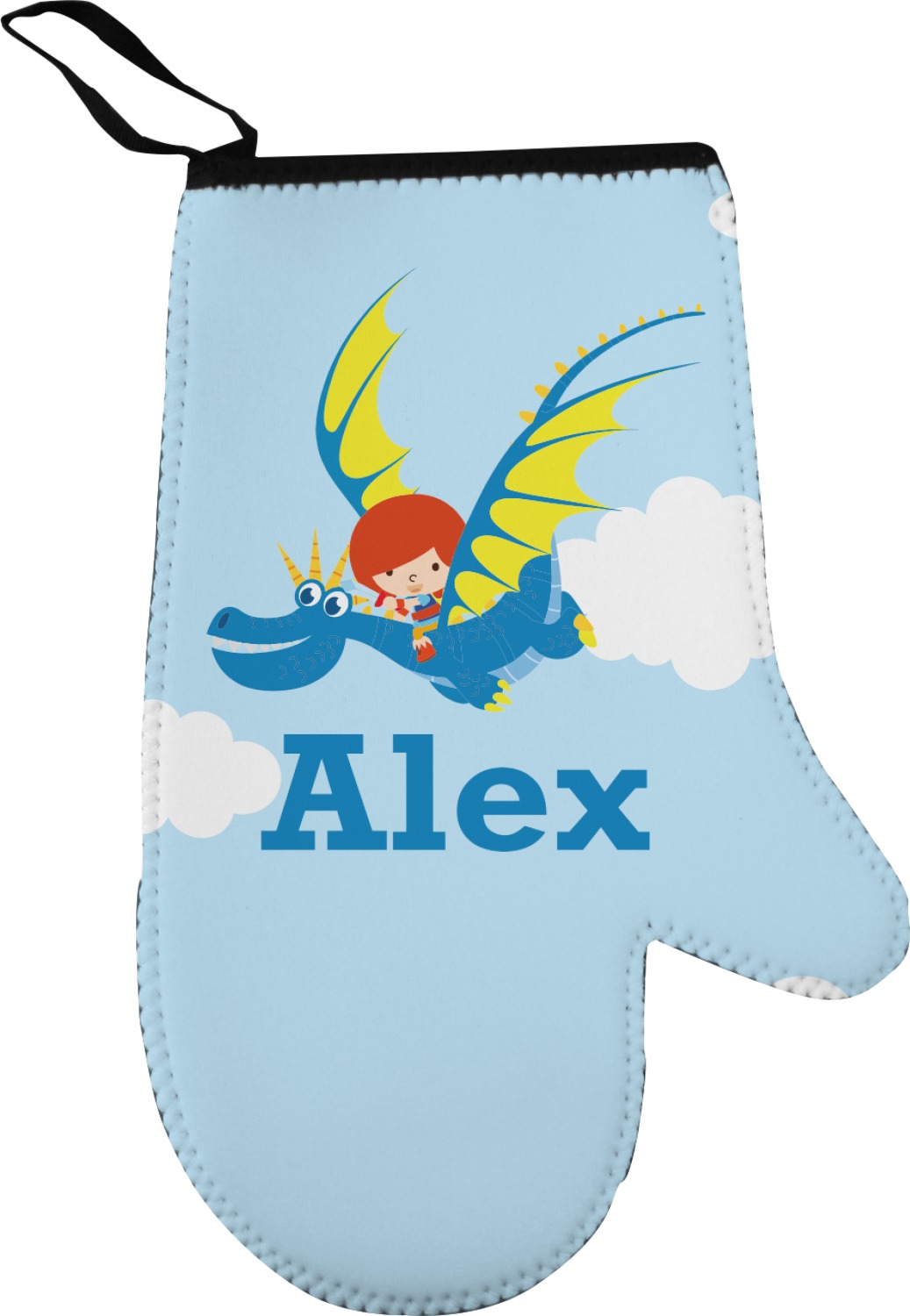Our oven mitt gloves are made from a durable neoprene and feature a textured, rubberized surface on the palm's side for an easy grip. A strong stitch connects the neoprene and rubber, increasing the durability of this mitt. These oven gloves are spacious, and can accommodate both small and large hands. A thin, black loop is attached to the mitt's top, which can be used to hang and store the mitt. Your customization is displayed across the entire front of the neoprene surface. We sell both left and right hand models of these, separately.