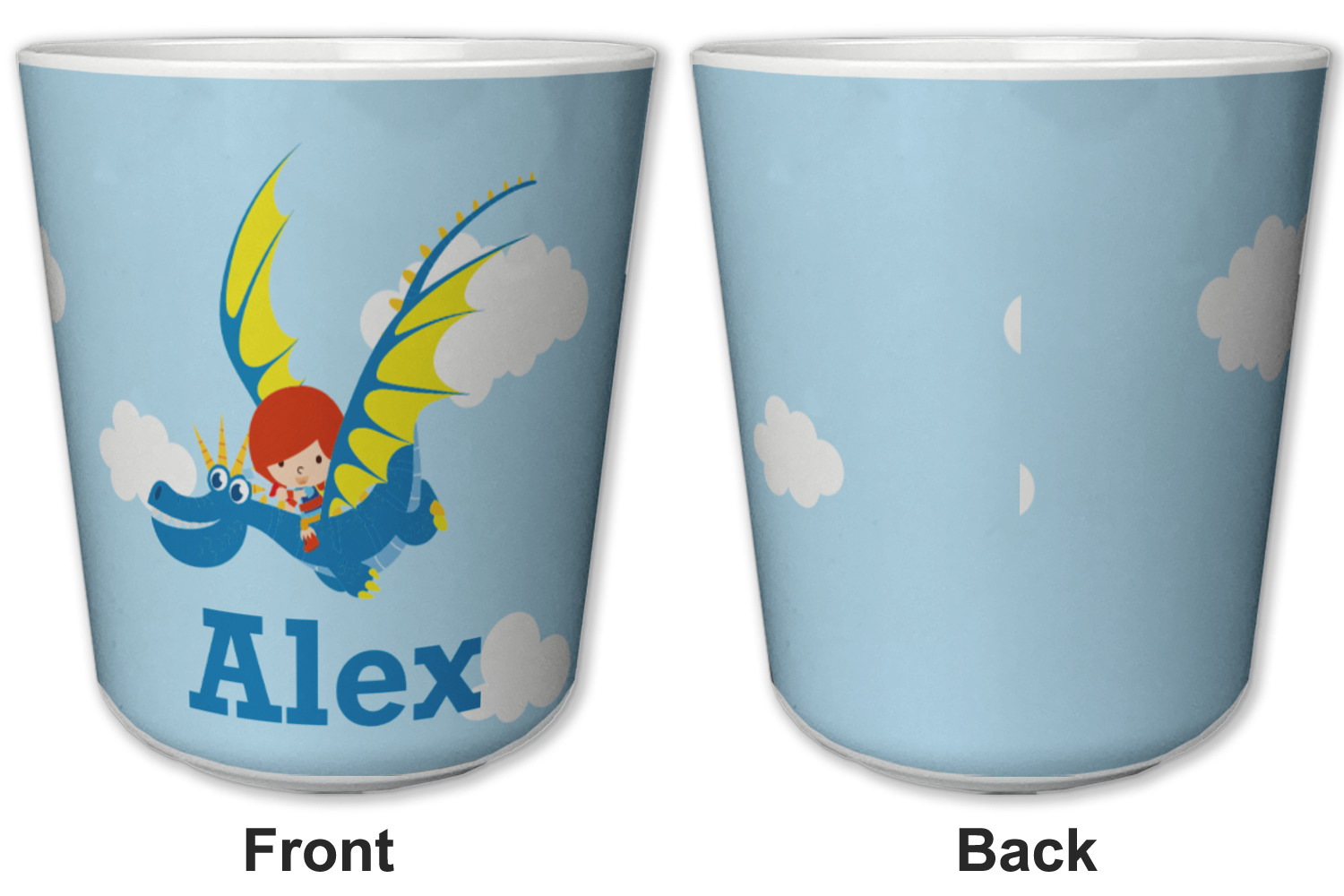 Made from a durable plastic, these tumbler cups are strong enough to withstand daily use and are perfect for young children. Each of these personalized plastic cups holds 6 ounces and measure at approximately 3" x 3" x 3.25". Place them in the bathroom as a rinsing cup, or give them to your kids during mealtimes. These 6 oz. plastic cups are BPA free, microwave and dishwasher safe, for your convenience. Your personalized design is displayed across the entire outside of this cup, while the inside is white in color to make your customization really stand out.