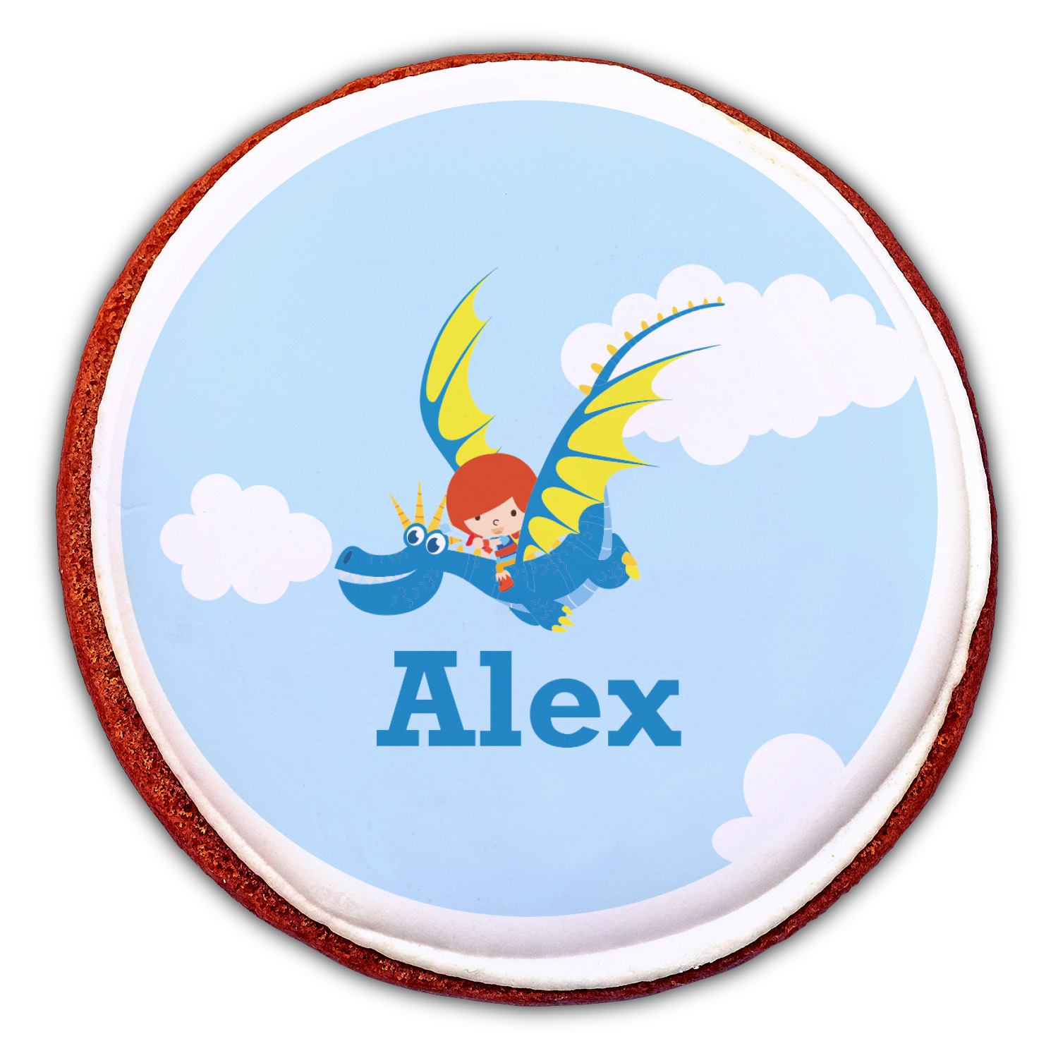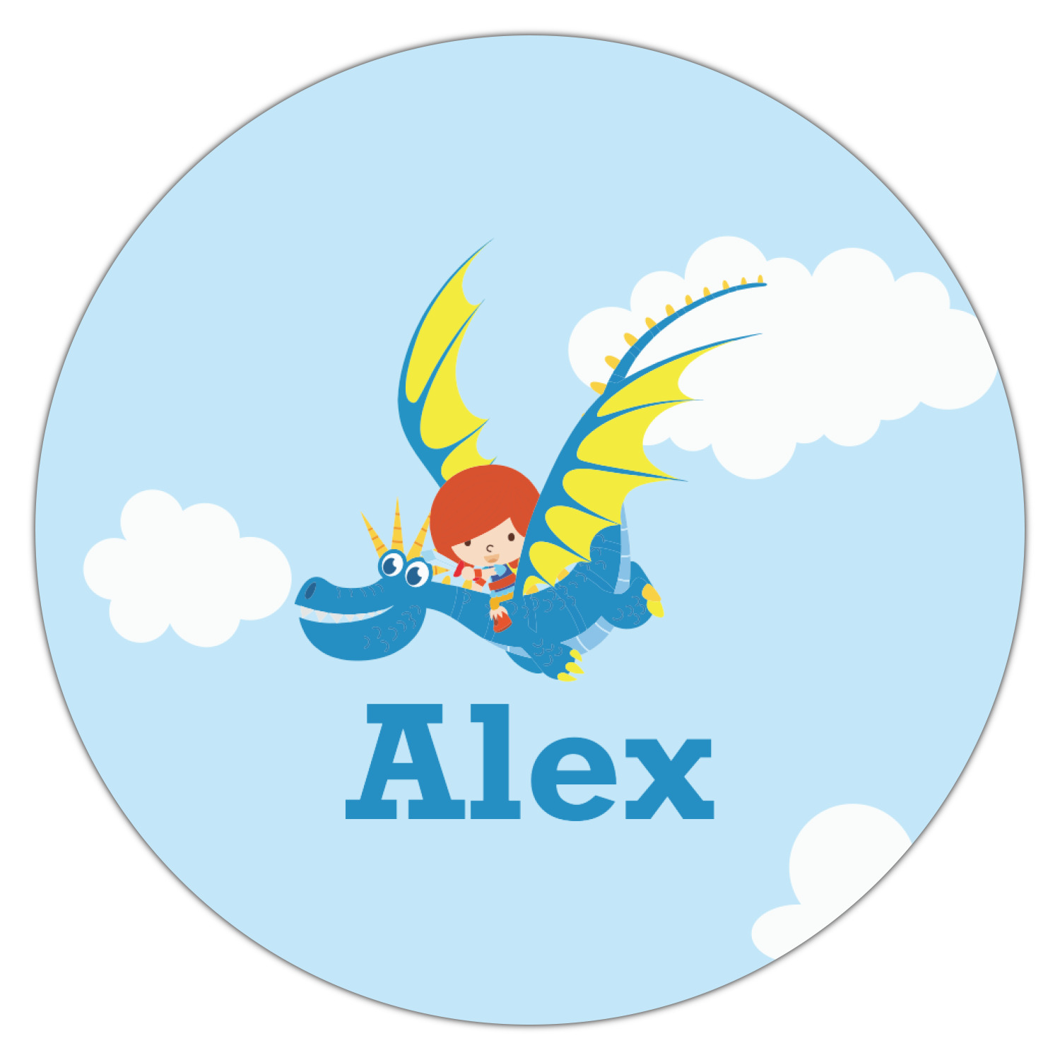 What little boy doesn't want to tame his own dragon? Open his imagination with this adorable design showing your little man flying through a beautiful blue cloudy sky on his own dragon.
