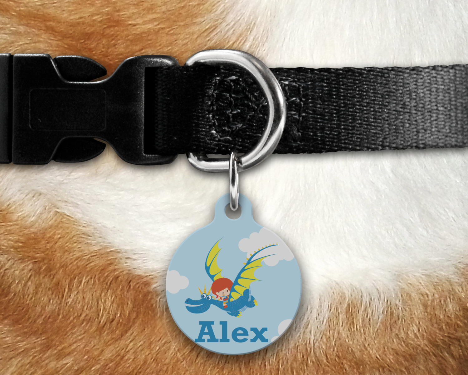 Go ahead; skip the monotony of plain pet ID tags with your very own, customized & personalized, round pet tag! This pet ID tag, fitting for both cats and dogs, will catch the eye of any onlooker (humans, canines, and felines, alike!) and accentuate your pet's individual personality.