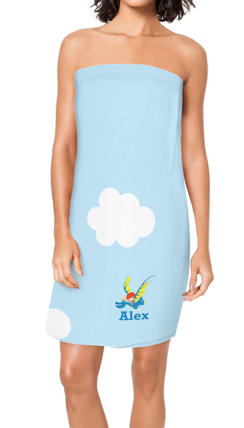 Made from a plush, fleece fabric, these luxurious towel wraps are comfortable and absorbent. They are printed, cut, and sewn for you, right here in the USA, after you place your order. These personalized bath wraps measure at approximately 59 by 32 inches, and display your customization across the outside.