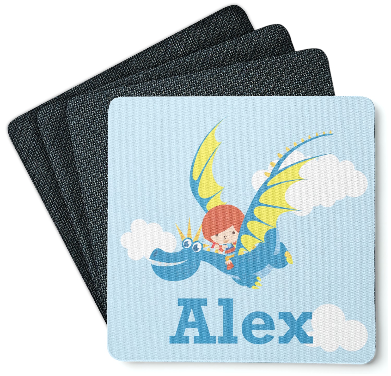 These drink coasters have a smooth, polyester top and a textured, rubber backing on its bottom. The non-slip rubber backing underneath works to keep any spills at bay. At 4 by 4 by 0.25 inches thick, these custom coasters are a suitable size for most drinkware. Your personalization is displayed atop the face of the cup coaster. We sell these rubber coasters in two different shapes: square and round. You can buy each shape as singulars or as a set of 4.