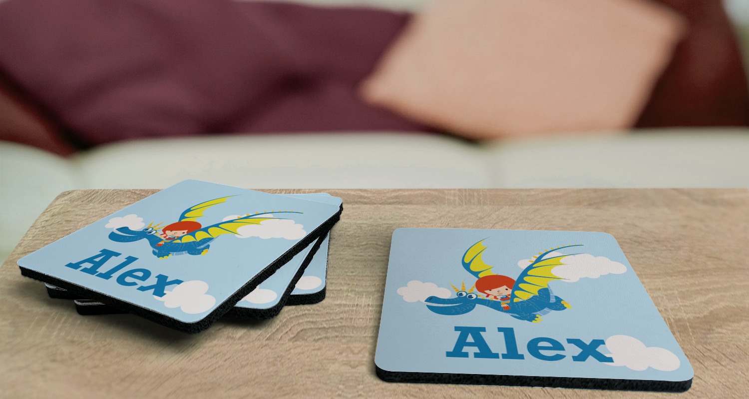 Replace your boring, run-of-the-mill coasters with a set of 4 personalized coasters! When personalized, these coasters will protect your beloved surfaces while adding to your home's decor! Thanks to your coasters bright colors and unique design, your guests will be eager to use them!