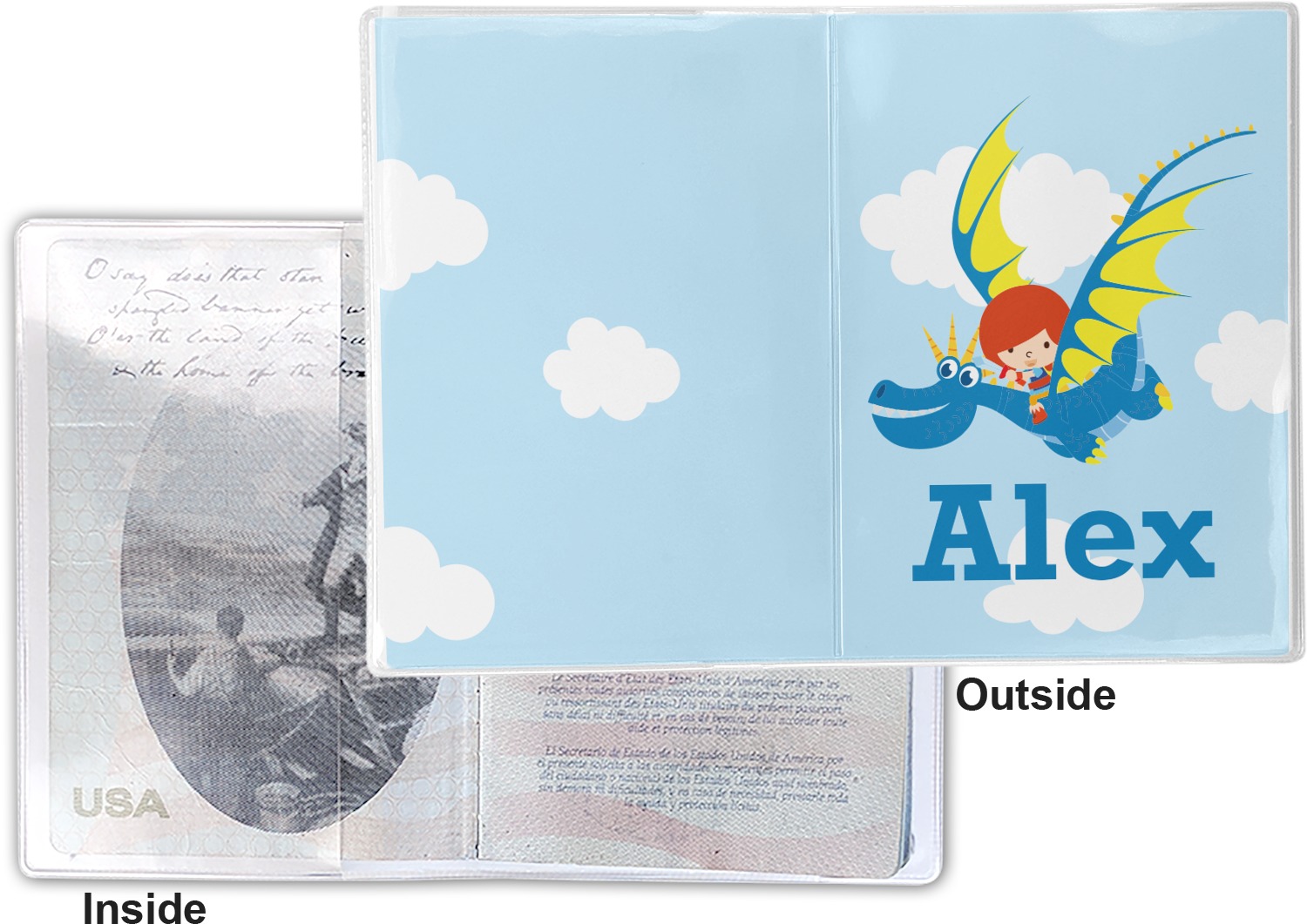 This cover is made of a sturdy clear vinyl with a personalized vinyl insert inside. There is a large and a small pocket on either side to hold the covers of your passport easily and firmly. The passport holder is approximately 7.5" x 5.25", the perfect size to snugly fit your passport. This slim cover is the perfect way to protect your passport without being one more bulky item you have to carry.