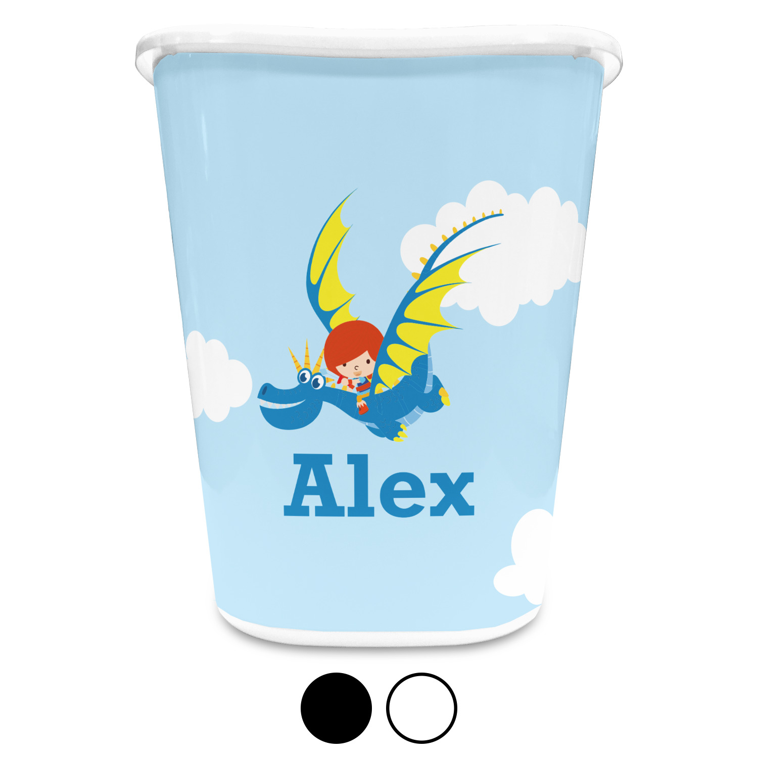 You can choose to purchase these decorative wastebaskets in either a white or a black color that will show on the base and the upper rim. Your customization is printed on a high-gloss, fine-quality vinyl adhesive, and you can choose to either have this adhesive applied to one side only or to both sides. As such, this plastic wastebasket can be single-sided or double-sided, depending on your creative vision. Your customization is printed using durable inks, making the design waterproof and resistant to fading over time.
