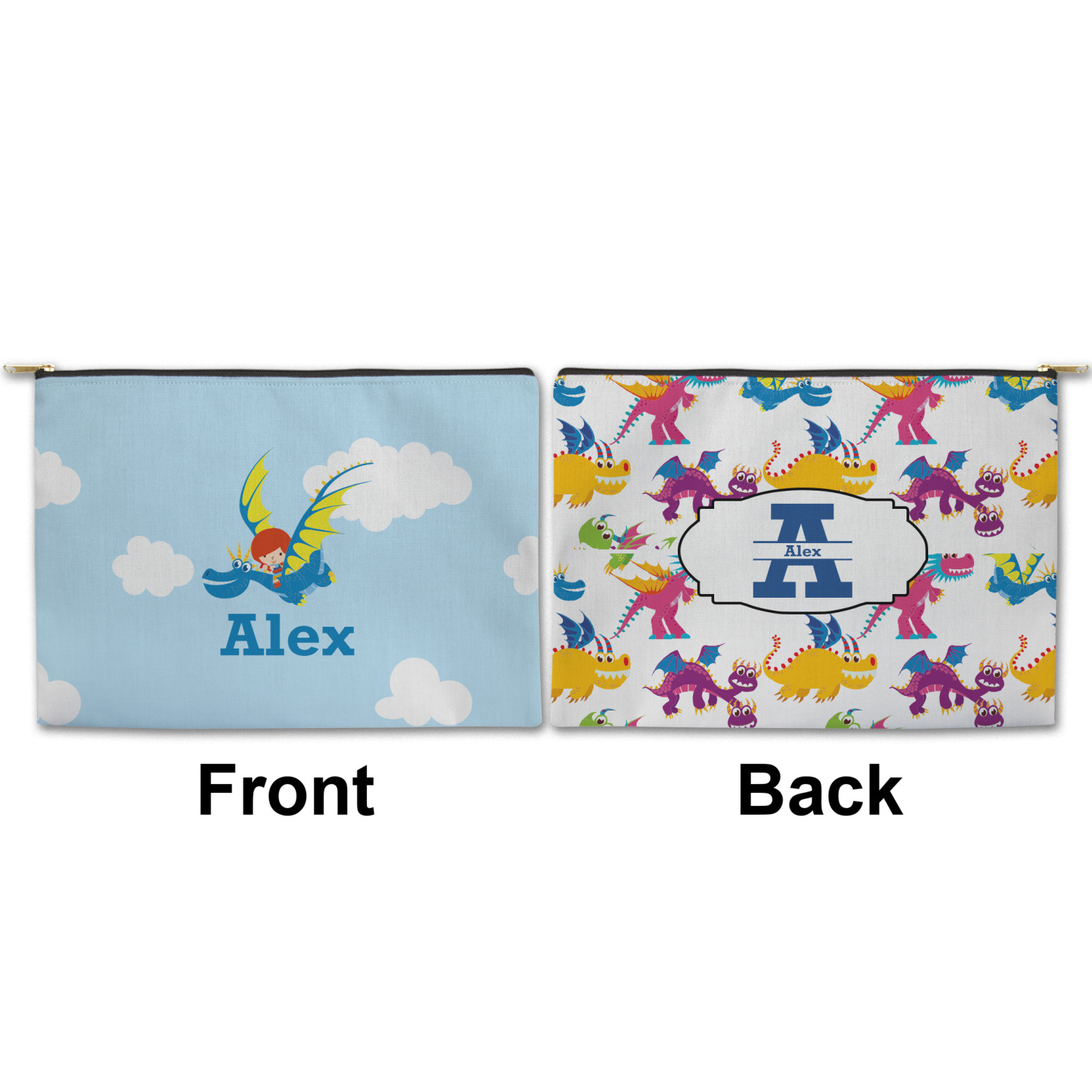 You can design both the front and the back of the pouch - same design, two complementary designs or two totally different designs - the choice is yours! We offer many different personalization styles i.e. name, name & initial, monograms - so the choice to personalize is also yours.