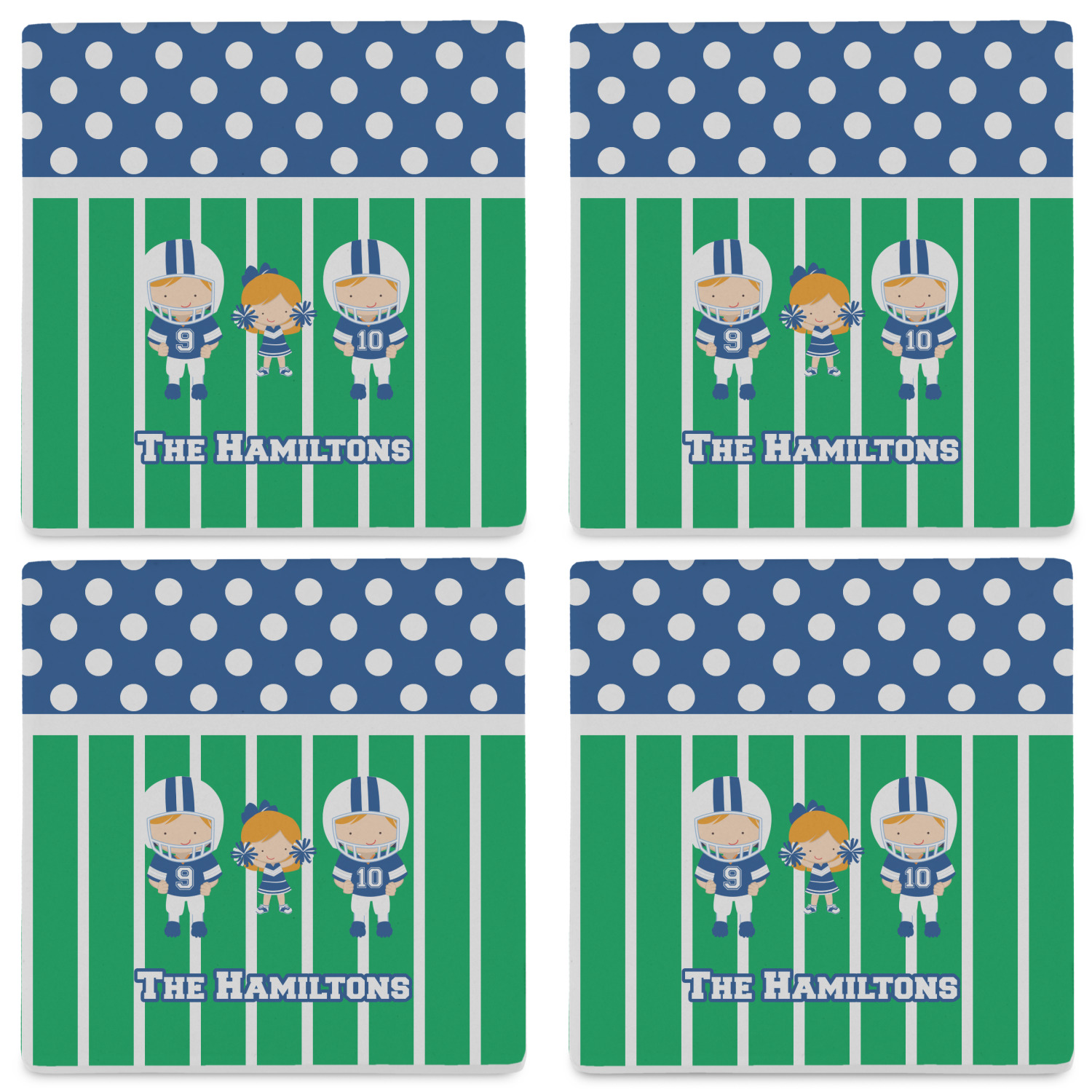 You can further add personalization with not only your family name or children's names but with skin and hair color too AND the football players can have their own numbers.