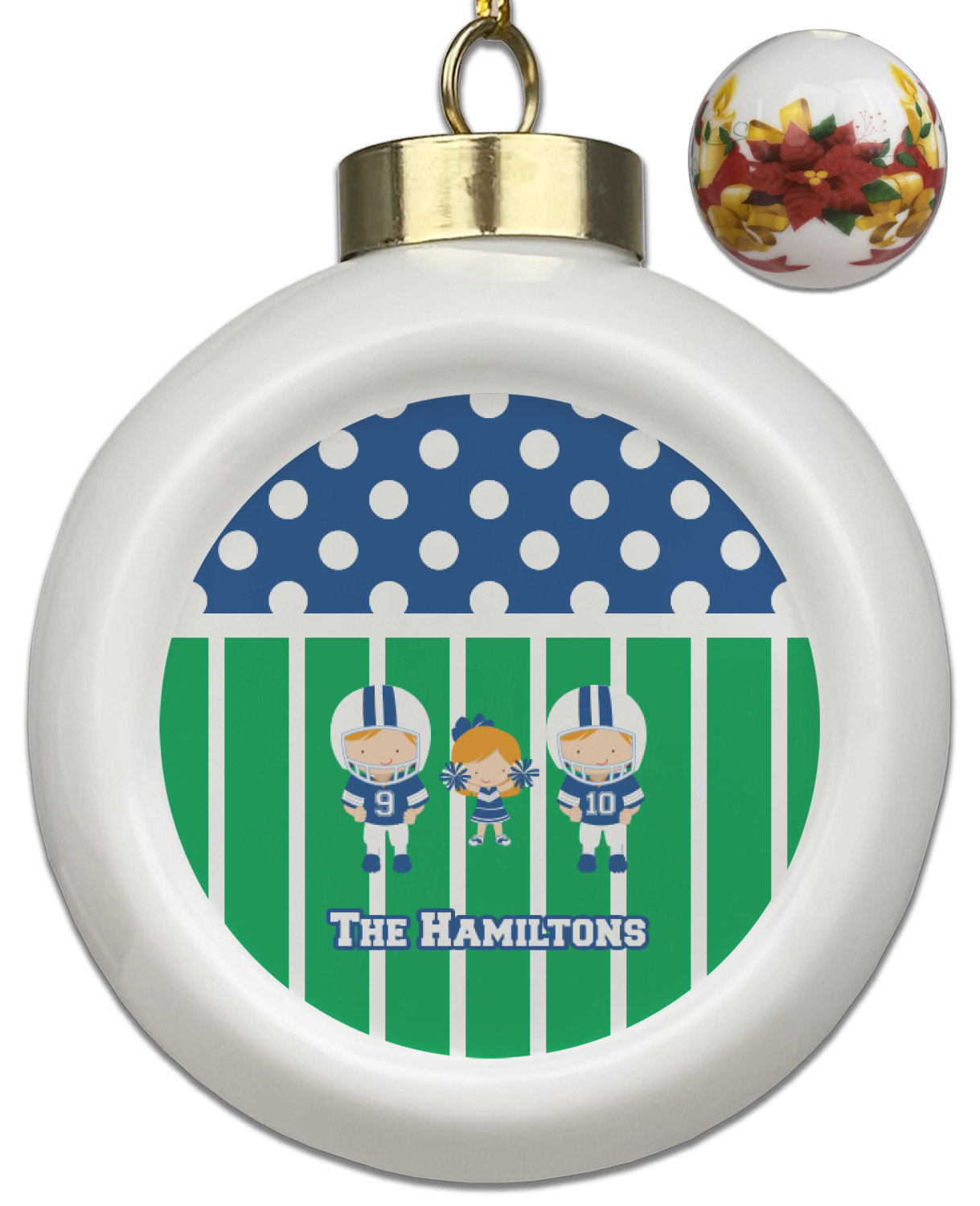 Our Christmas ornaments are a unique ceramic ball shape with a twist as it has a flat face to display your custom design! Select from one of our two design types - Christmas Tree or Poinsettia Garland - to adorn the curved back of your personal design. Each ornament measures 3H x 2.5W x 2D accompanied with a gold string accent for finishing touches to hang on your beautiful Christmas tree!