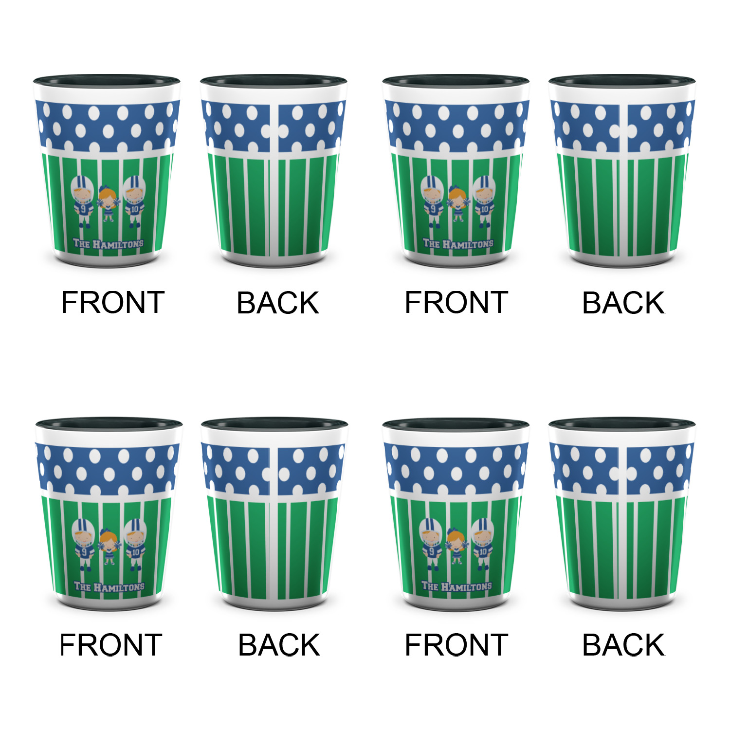 Made from ceramic these shot glasses are printed in full color with the design of your choice. These are a standard 1.5oz size and stand 2.25" tall. Available in a full white ceramic or a two-tone with a black color inside the shot glass. Buy a single or a set of 4, all of which can be designed separately to get you just what you want and need.