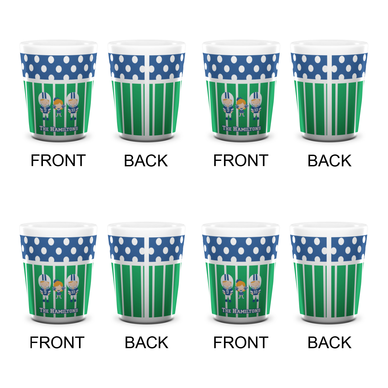 Made from ceramic these shot glasses are printed in full color with the design of your choice. These are a standard 1.5oz size and stand 2.25" tall. Available in a full white ceramic or a two-tone with a black color inside the shot glass. Buy a single or a set of 4, all of which can be designed separately to get you just what you want and need.