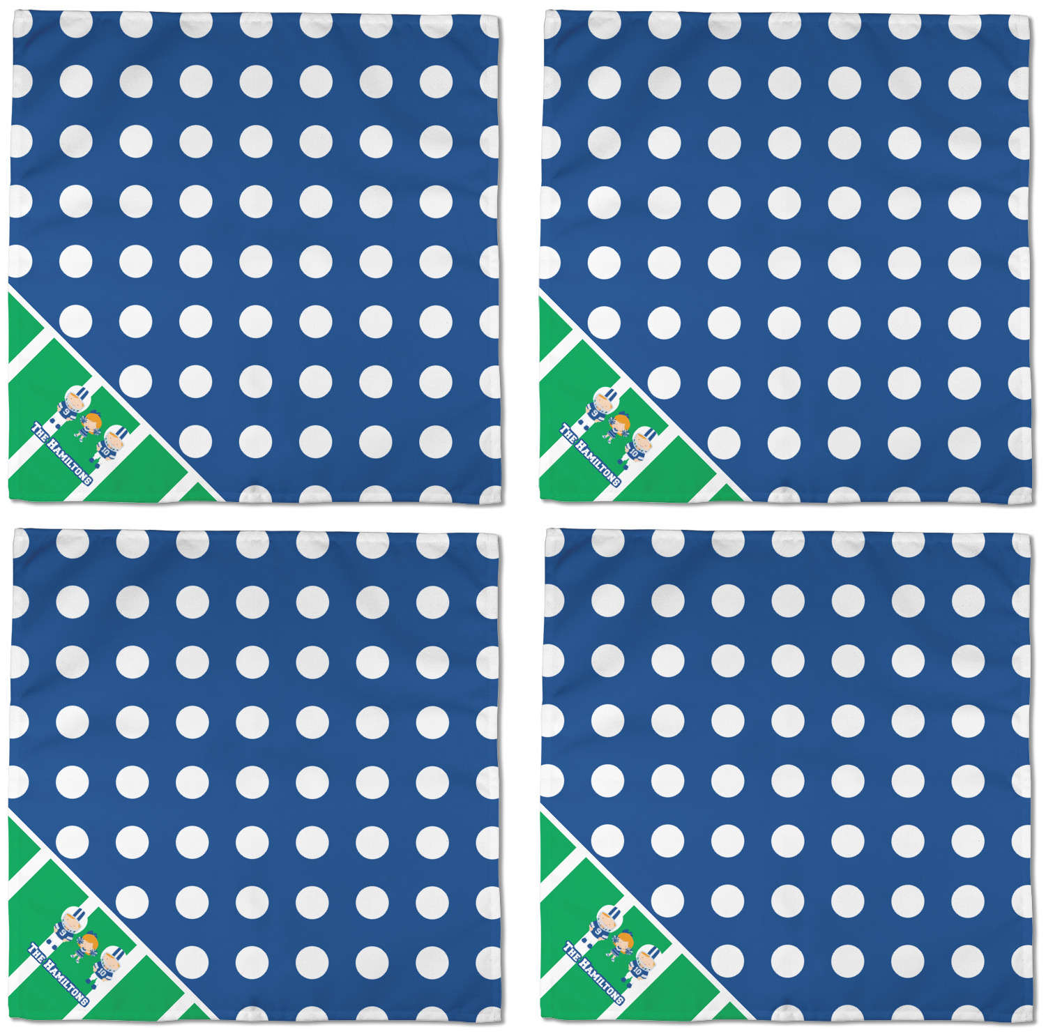 Each customizable cloth napkin is a polyester material guaranteed for long-term use. Since our napkins are cloth, it serves as a great reusable and eco-friendly dining decor. We sell personalized napkins individually or as a set of 4! Print your own unique design on all four napkins, or create four individual designs for each napkin! We offer two different napkin sizes - Cocktail napkins (approx. 10 x 10) and Dinner napkins (approx. 20 x 20). We print your design on one side, perfect for displaying your custom designed lunch napkins in any fold or table setting!