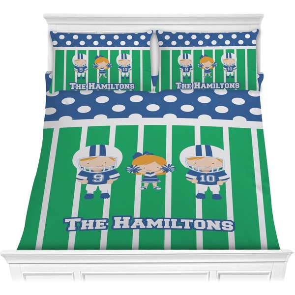 We have hundreds of different design templates for you to choose from Each design can be customized to your exact specifications. Not only can you customize the comforter, but you can also customize each pillow sham e.g. for a queen comforter set you have have Mr & Mrs pillow shams with the last name on comforter.