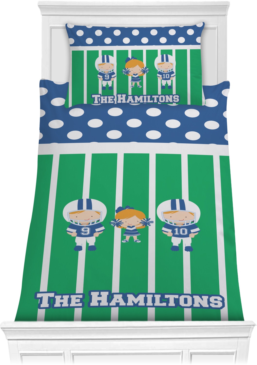You can further add personalization with not only your family name or children's names but with skin and hair color too AND the football players can have their own numbers.
