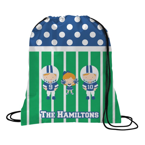 What a great way to showcase your kids and the love of football. A fun polka dot pattern on the top brings fun to the design, while the bottom is the football field. This design is so versatile. Whether you have a football player and a cheerleader, or two football players, or even two cheerleaders and one football player you can mix and match up to three kids.