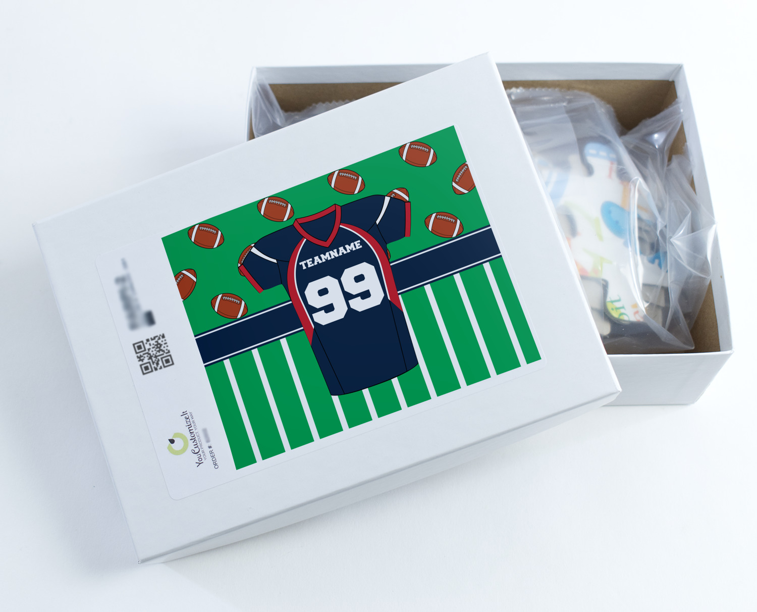 This design is perfect for any guy or gal who loves football. The football jersey is a fun way to personalize this design by putting your name on the back or the front. You can even change the number!