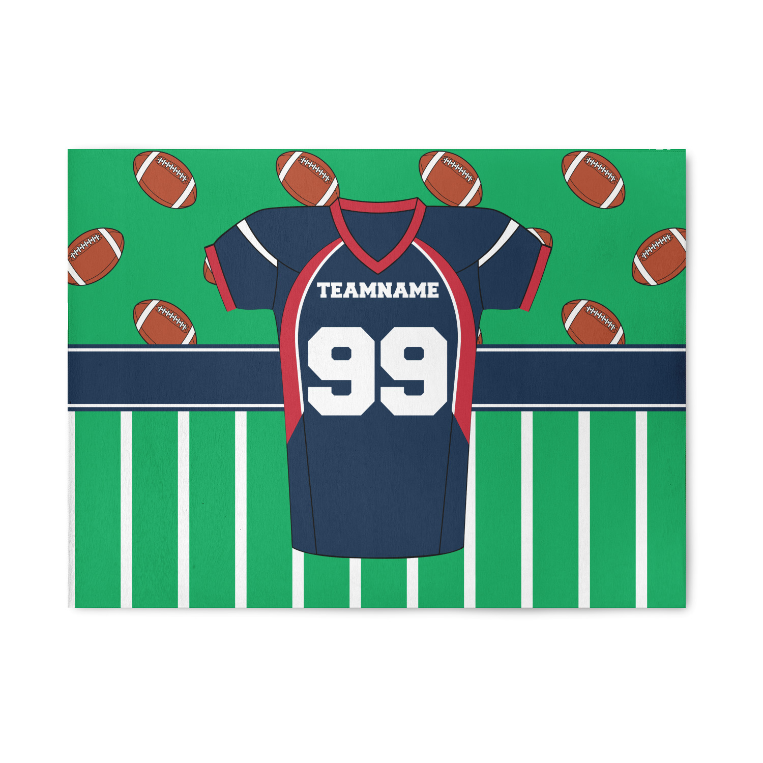 Easily change the navy, white, and blue to your favorite team's colors. The footballs and green field are a fun background pattern, which can be easily changed as well!