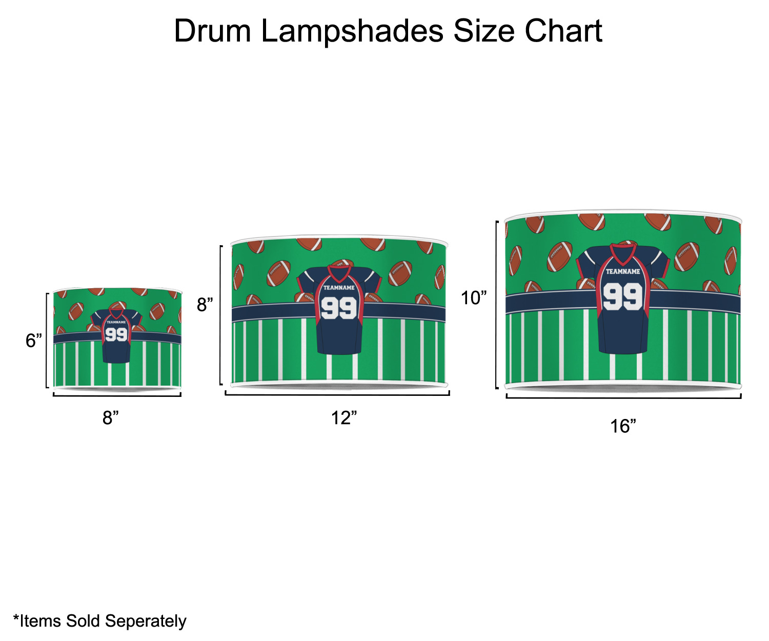 Our customized lamp shades also come in 3 different sizes: 8", 12" and 16", measuring at 8" in diameter by 6" tall, 12" in diameter by 8" tall, and 16" in diameter by 10" tall, respectively.