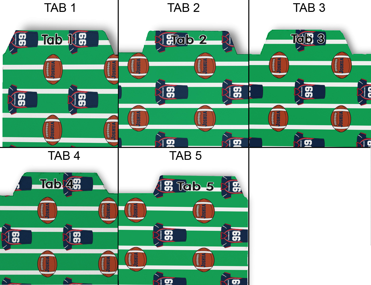Easily change the navy, white, and blue to your favorite team's colors. The footballs and green field are a fun background pattern, which can be easily changed as well!