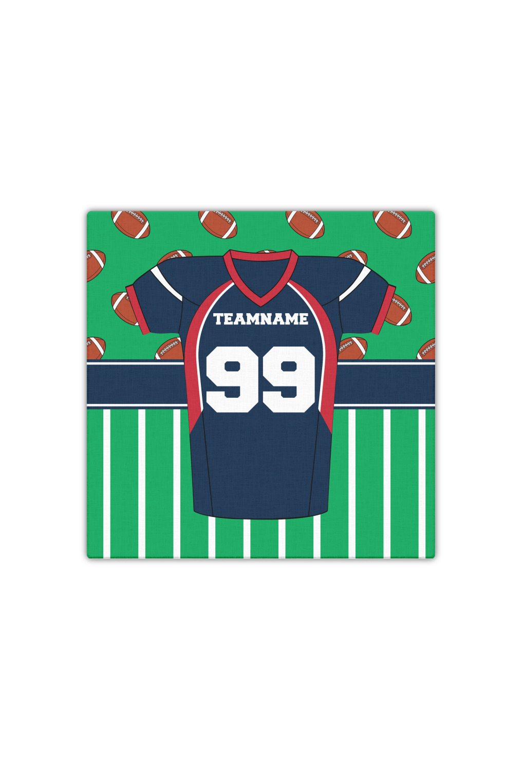 Easily change the navy, white, and blue to your favorite team's colors. The footballs and green field are a fun background pattern, which can be easily changed as well!