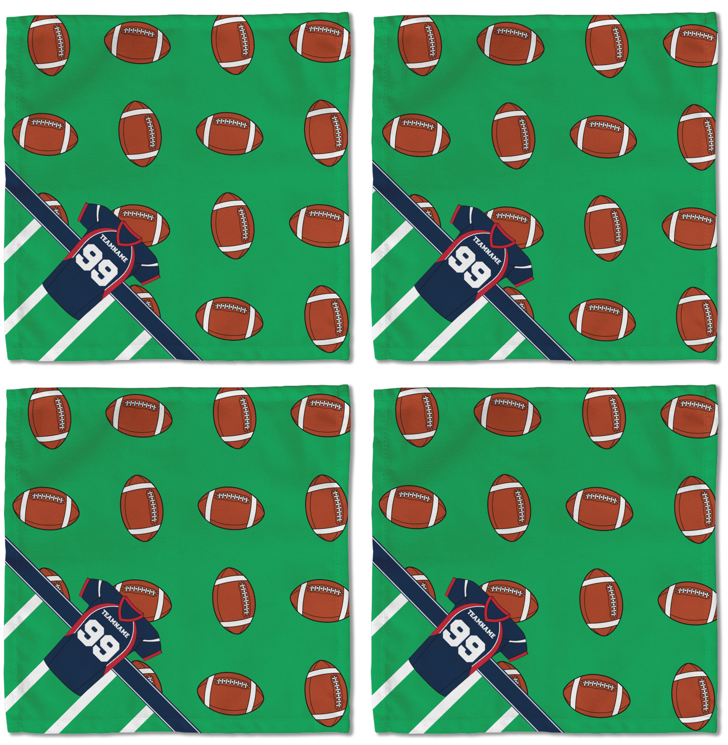 Easily change the navy, white, and blue to your favorite team's colors. The footballs and green field are a fun background pattern, which can be easily changed as well!