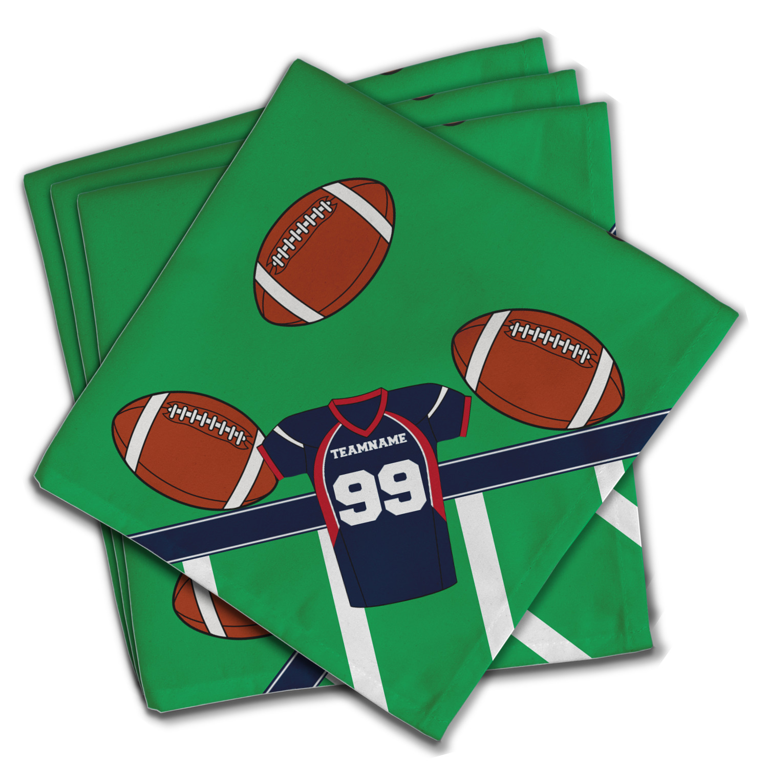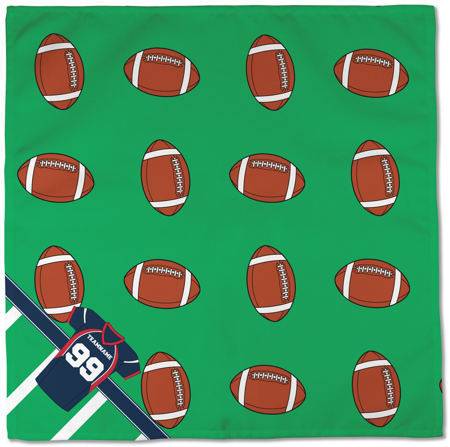 Easily change the navy, white, and blue to your favorite team's colors. The footballs and green field are a fun background pattern, which can be easily changed as well!