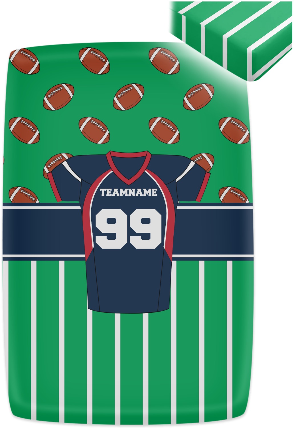 Easily change the navy, white, and blue to your favorite team's colors. The footballs and green field are a fun background pattern, which can be easily changed as well!