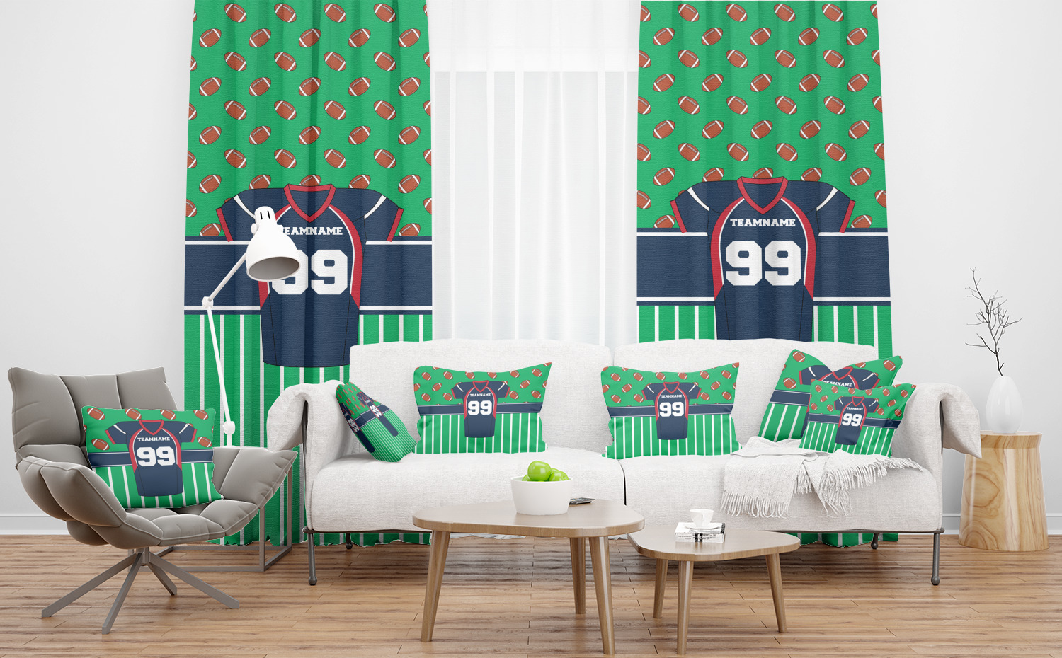 Easily change the navy, white, and blue to your favorite team's colors. The footballs and green field are a fun background pattern, which can be easily changed as well!