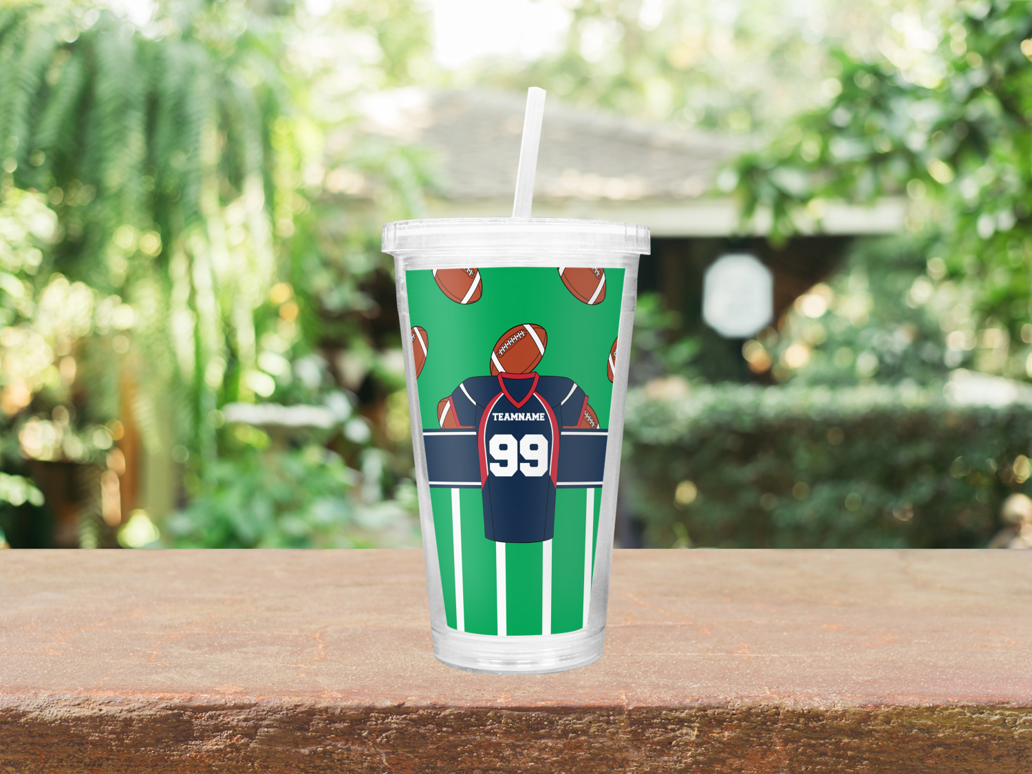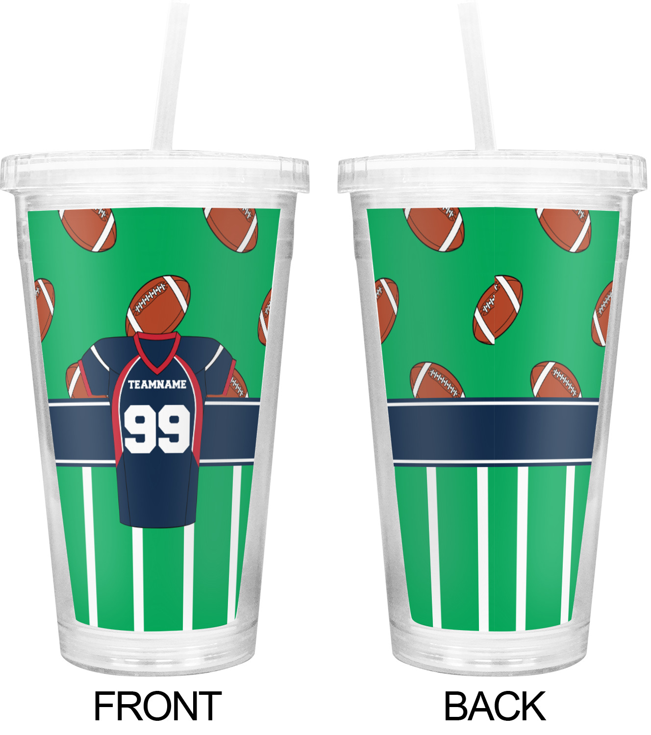 Easily change the navy, white, and blue to your favorite team's colors. The footballs and green field are a fun background pattern, which can be easily changed as well!