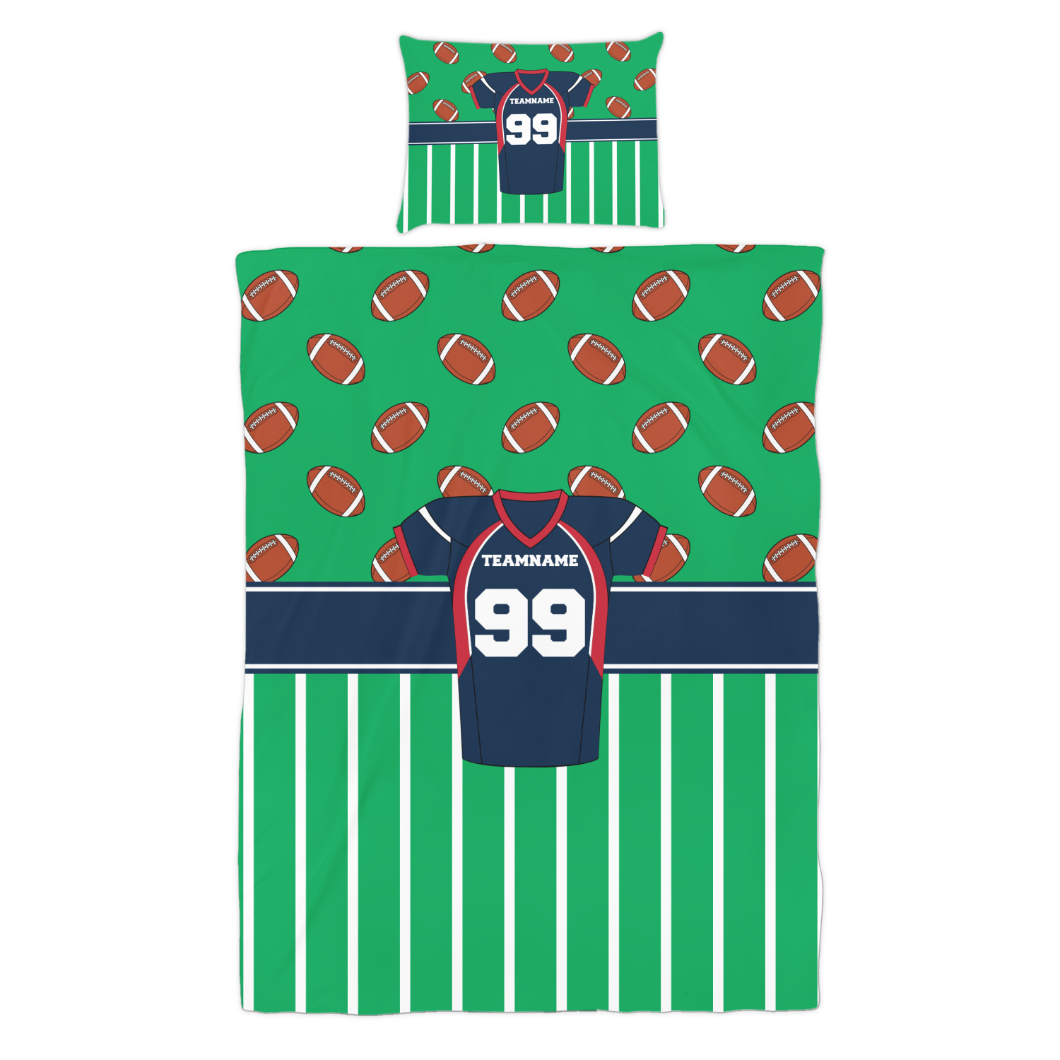 Easily change the navy, white, and blue to your favorite team's colors. The footballs and green field are a fun background pattern, which can be easily changed as well!