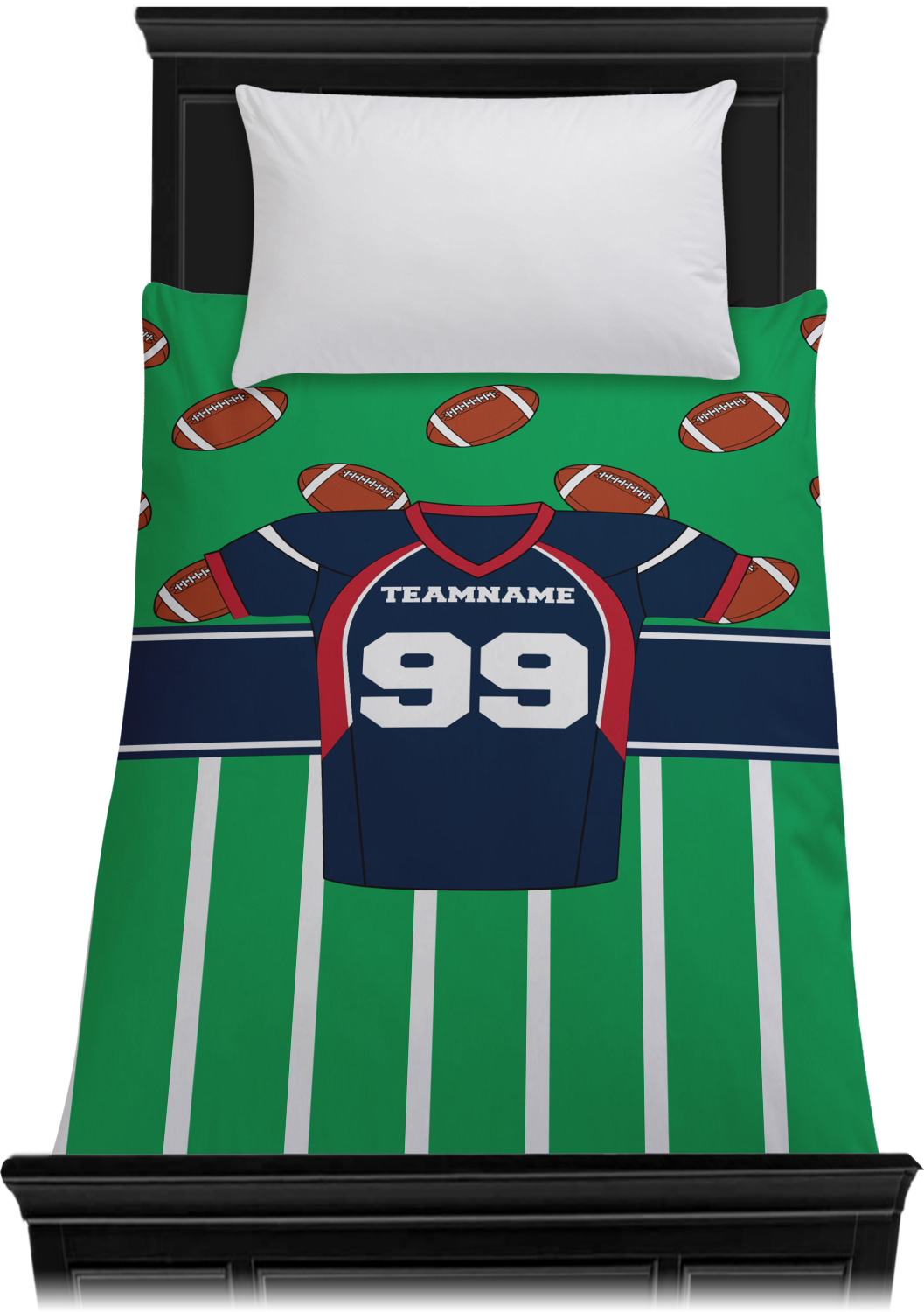 Easily change the navy, white, and blue to your favorite team's colors. The footballs and green field are a fun background pattern, which can be easily changed as well!