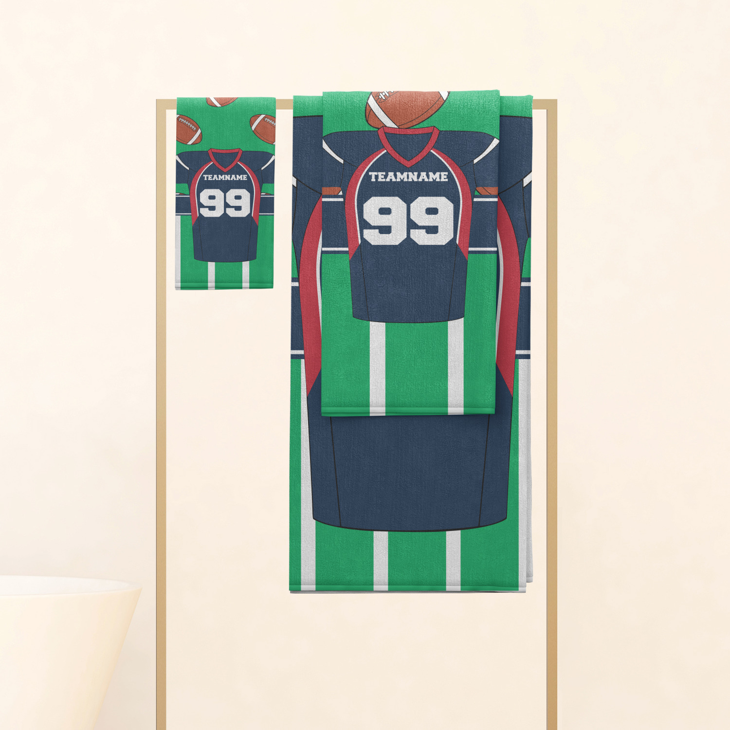 Easily change the navy, white, and blue to your favorite team's colors. The footballs and green field are a fun background pattern, which can be easily changed as well!