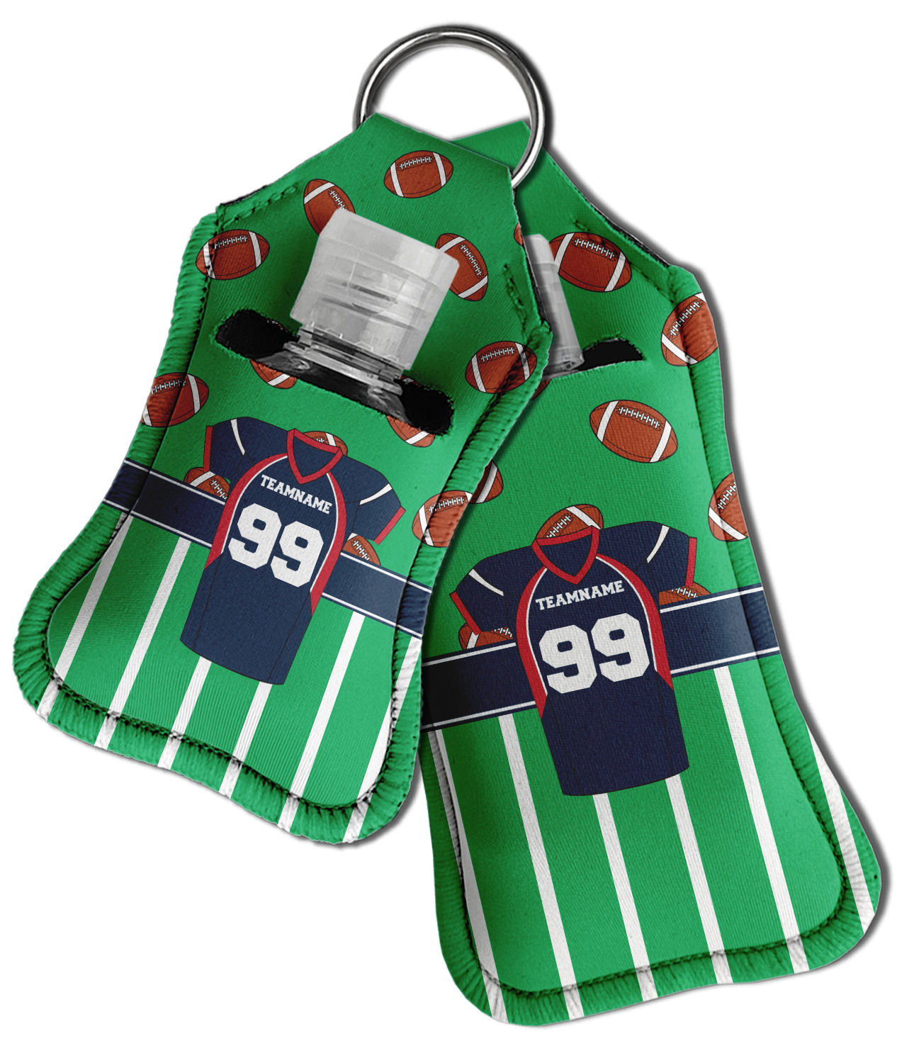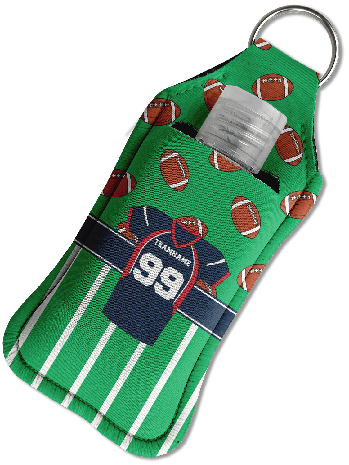 Each hand sanitizer holder comes with its own empty travel-sized, refillable hand sanitizer sure to fit snug in your customized sanitizer case! Our hand sanitizer cases are a durable, yet soft neoprene material sure to last any daily activities or travel agenda. Customize and personalize a hand sanitizer bottle holder with one of our two sizes - small (4.25" x 2.25") or large (5.5" x 2.5"). Each travel sanitizer holder comes with a keyring for attachment on bags, keys, or more!