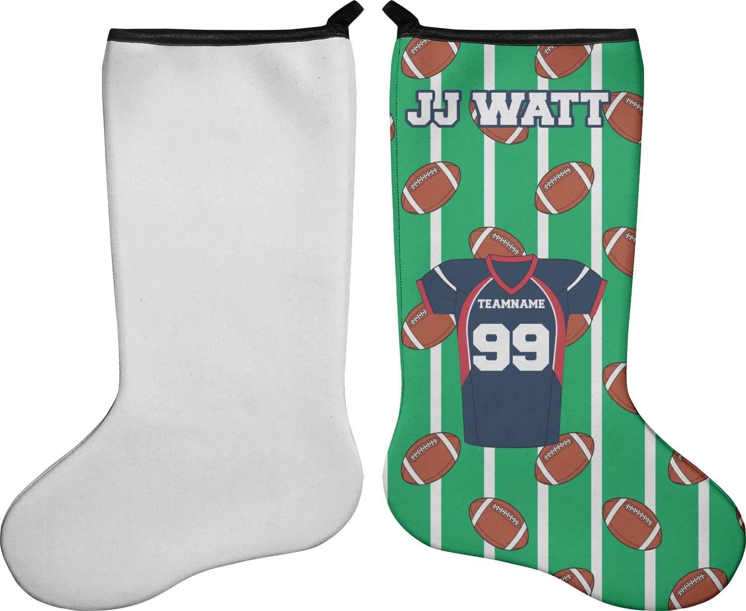 Easily change the navy, white, and blue to your favorite team's colors. The footballs and green field are a fun background pattern, which can be easily changed as well!