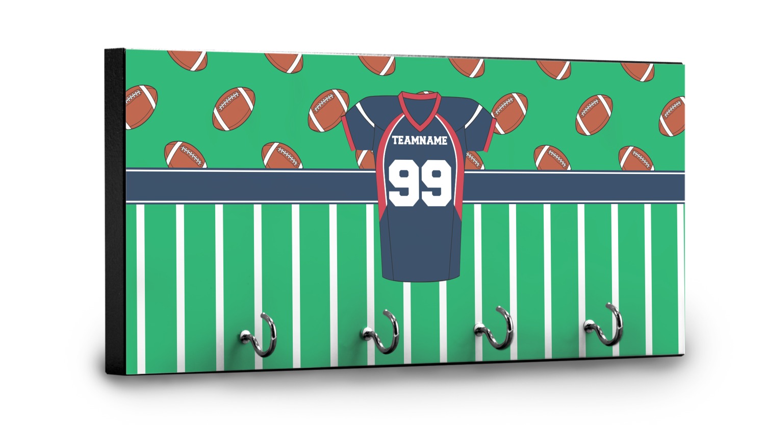Easily change the navy, white, and blue to your favorite team's colors. The footballs and green field are a fun background pattern, which can be easily changed as well!