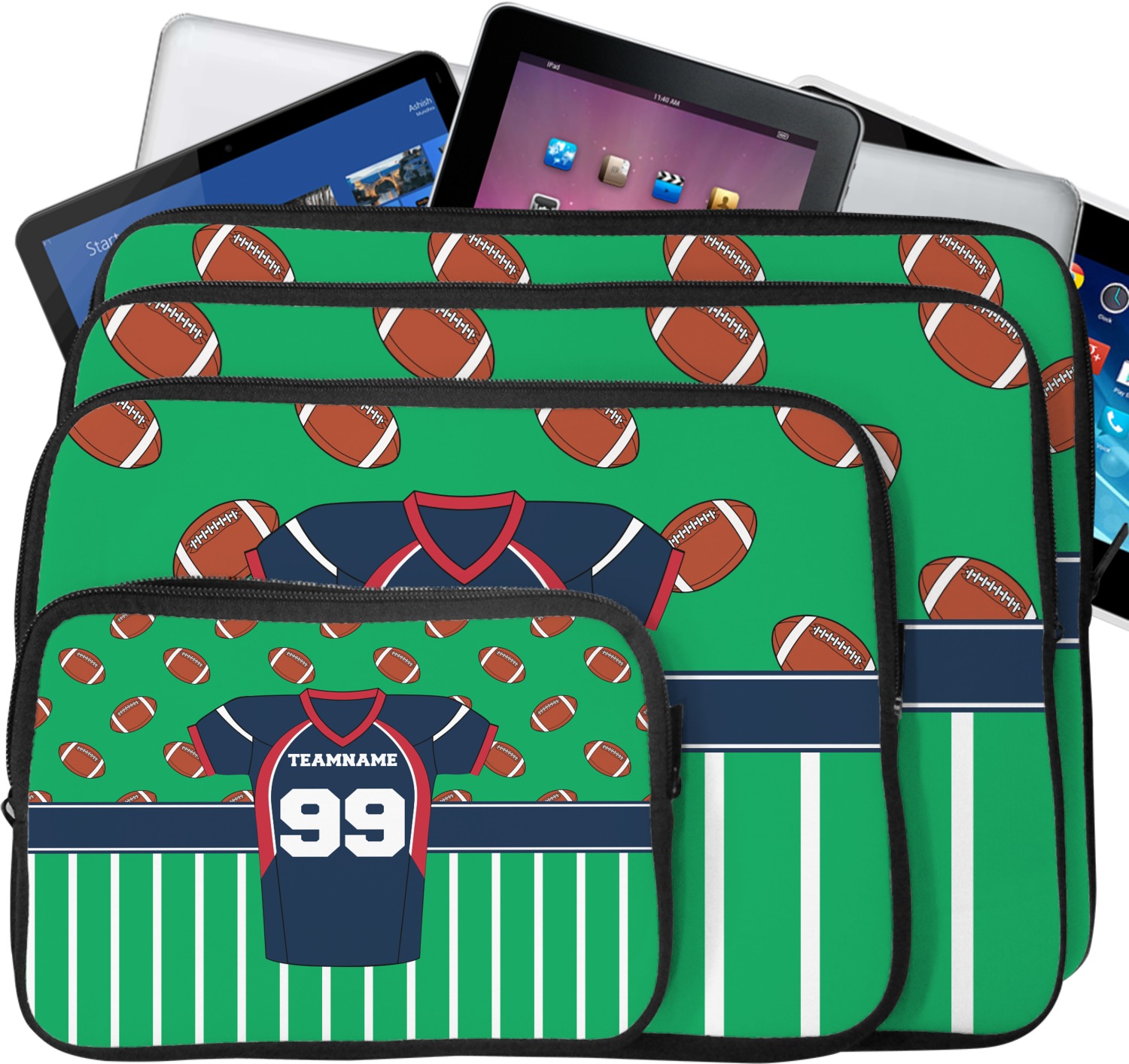These laptop covers are built from a water-resistant, cushioned neoprene. We display your personalized design on the front of this computer sleeve, while the other sides are simply the black color of the neoprene fabric. A zipper lines the top half of this case, for direct access to your device. For added protection, the interior of this neoprene laptop sleeve is lined with a padded, minky-like material.