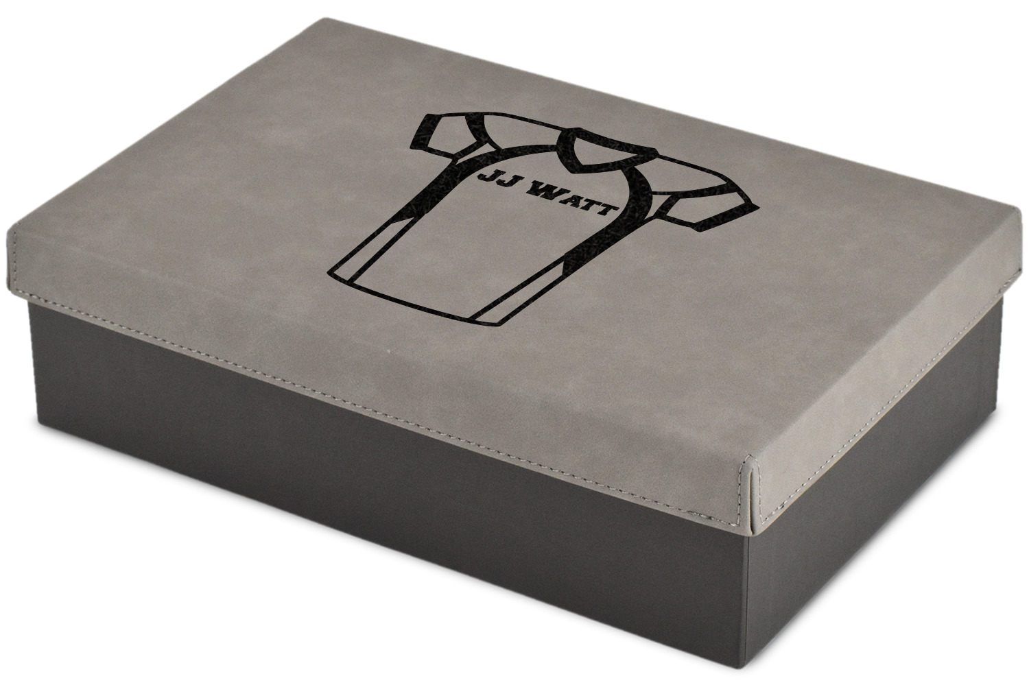 These gift boxes are available in 3 different sizes to accommodate various sized gifts. Available in gray as a neutral color for any occasion as well as to showcase your design boldly. Engraved with a laser this high quality paper board and faux leather gift box is unique and makes any gift stand out.