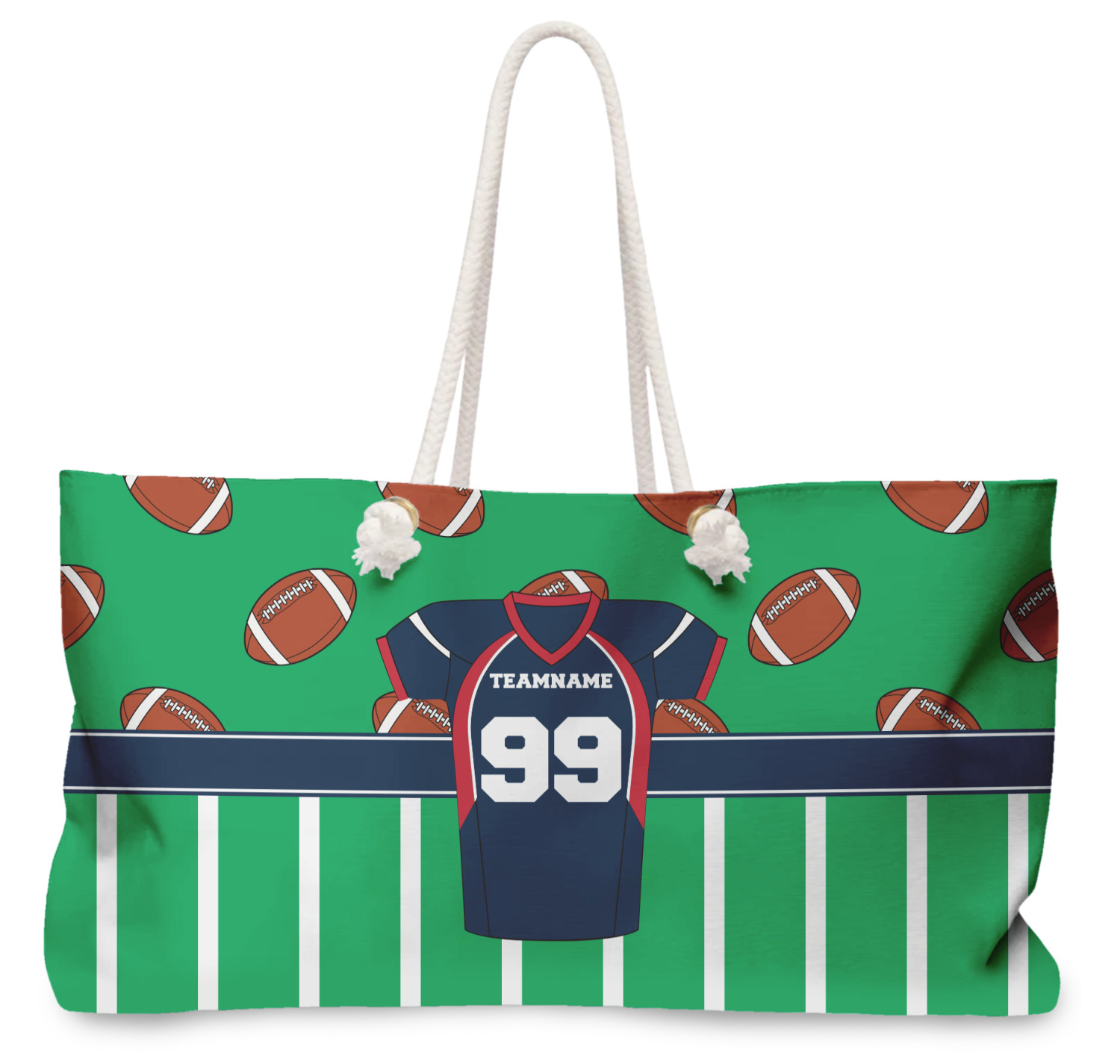 Easily change the navy, white, and blue to your favorite team's colors. The footballs and green field are a fun background pattern, which can be easily changed as well!