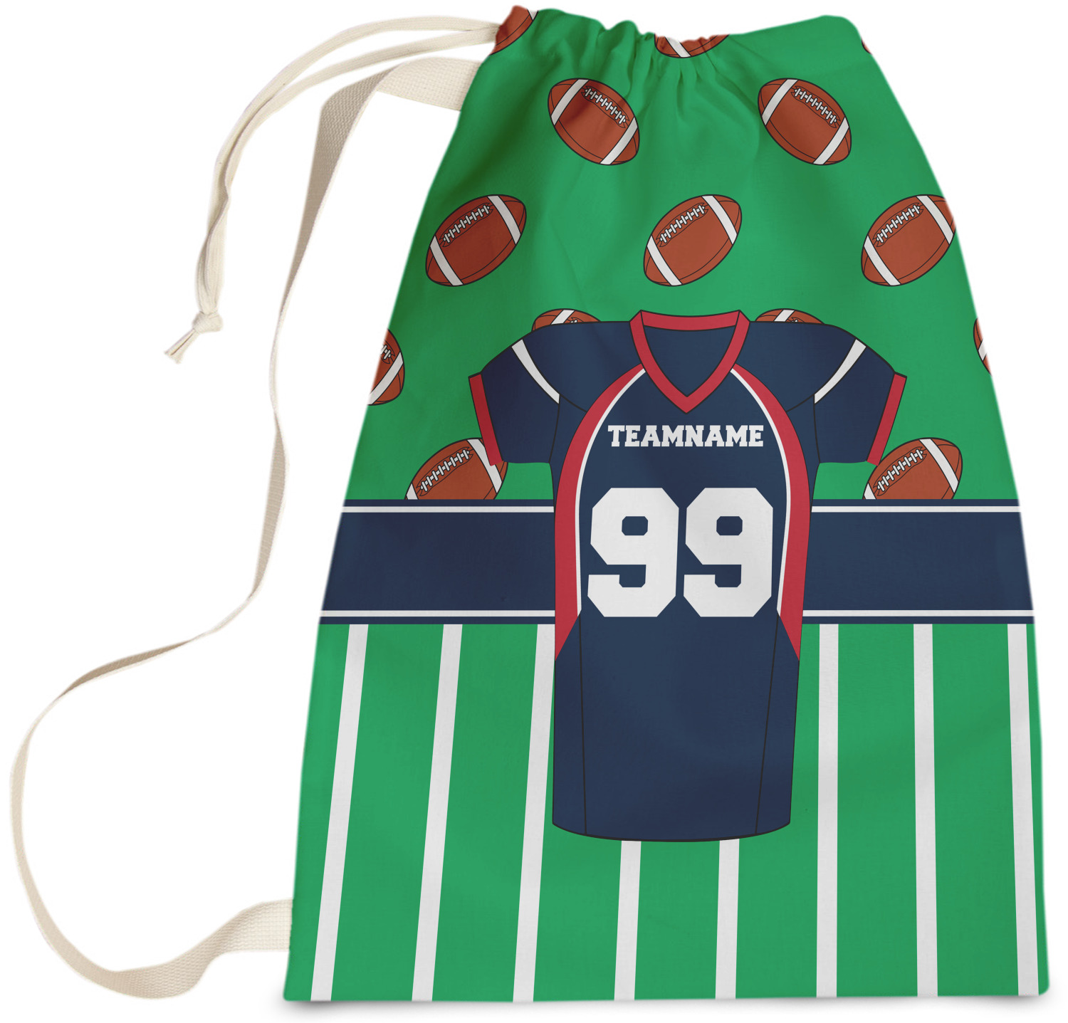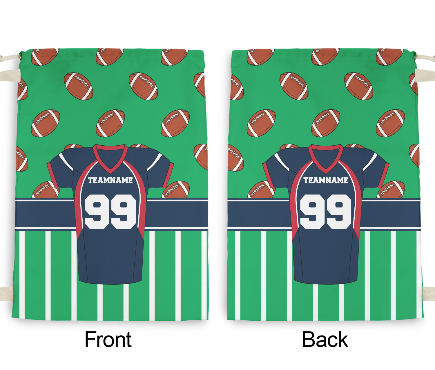 Easily change the navy, white, and blue to your favorite team's colors. The footballs and green field are a fun background pattern, which can be easily changed as well!