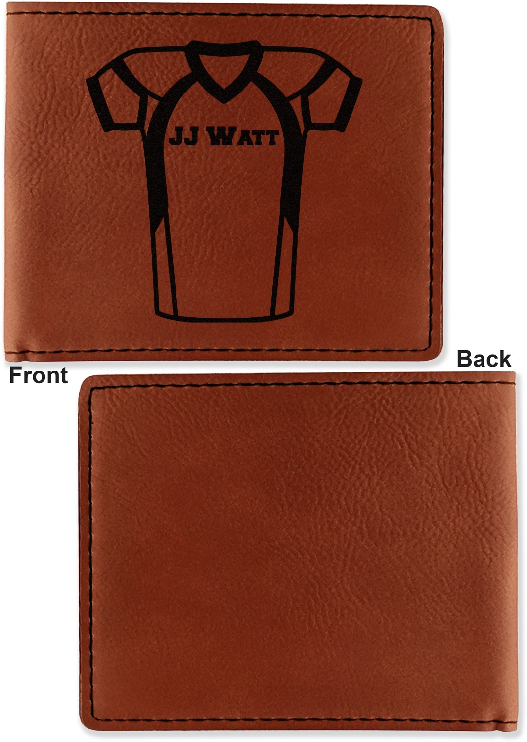 Your bifold wallet will be personalized by laser engraving, which will be a black color on the wallet. Choose a graphic, text, or monogram to personalize your wallet. There are thousands of choices in our design center.