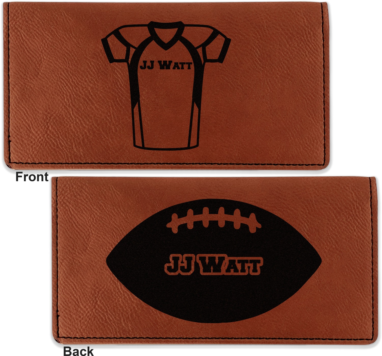 Go into our design center to start personalizing. Your checkbook cover will be laser engraved, making the graphic or text a black color. Choose a fun saying, monogram, or font to go on your checkbook cover. You have the opportunity to do it double or single sided.