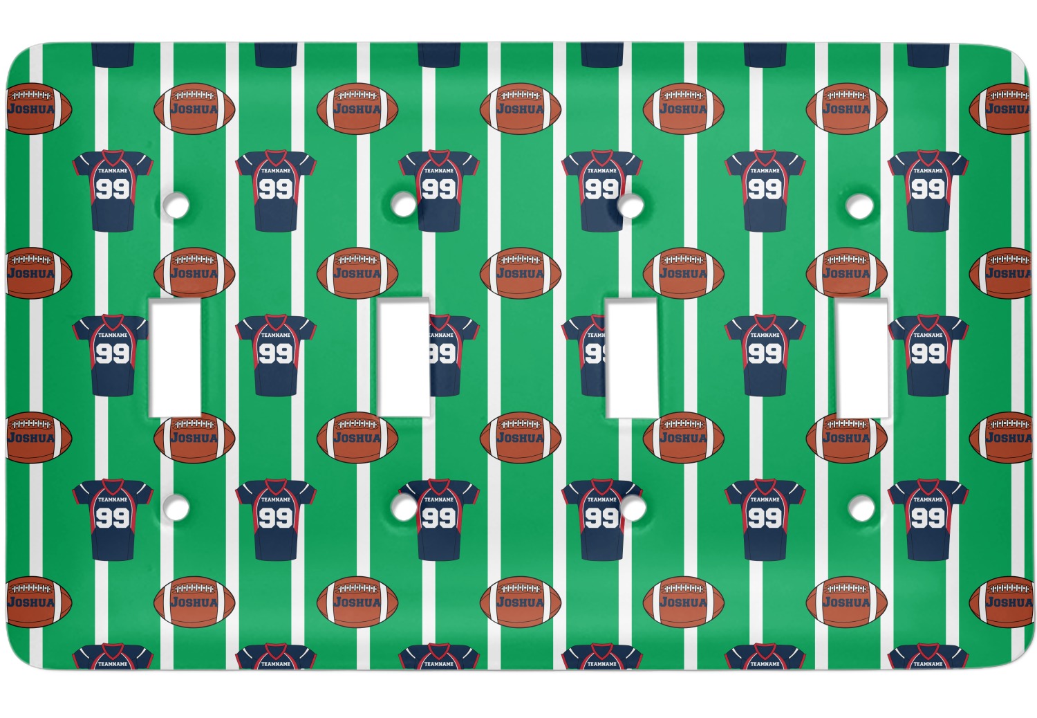 Easily change the navy, white, and blue to your favorite team's colors. The footballs and green field are a fun background pattern, which can be easily changed as well!