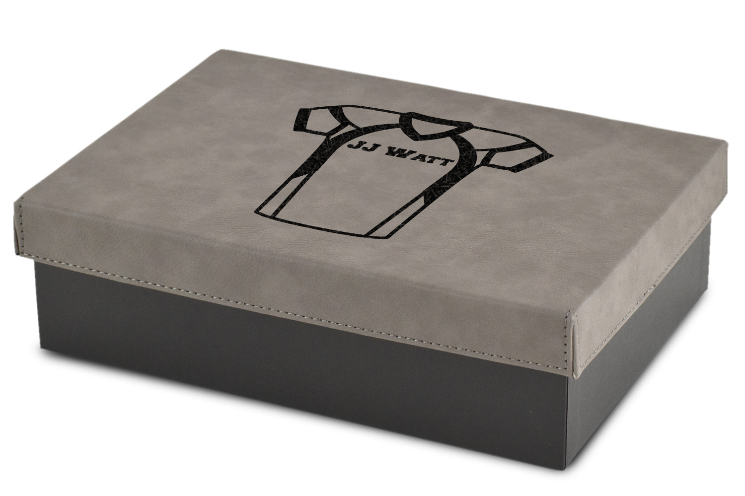 These gift boxes are available in 3 different sizes to accommodate various sized gifts. Available in gray as a neutral color for any occasion as well as to showcase your design boldly. Engraved with a laser this high quality paper board and faux leather gift box is unique and makes any gift stand out.
