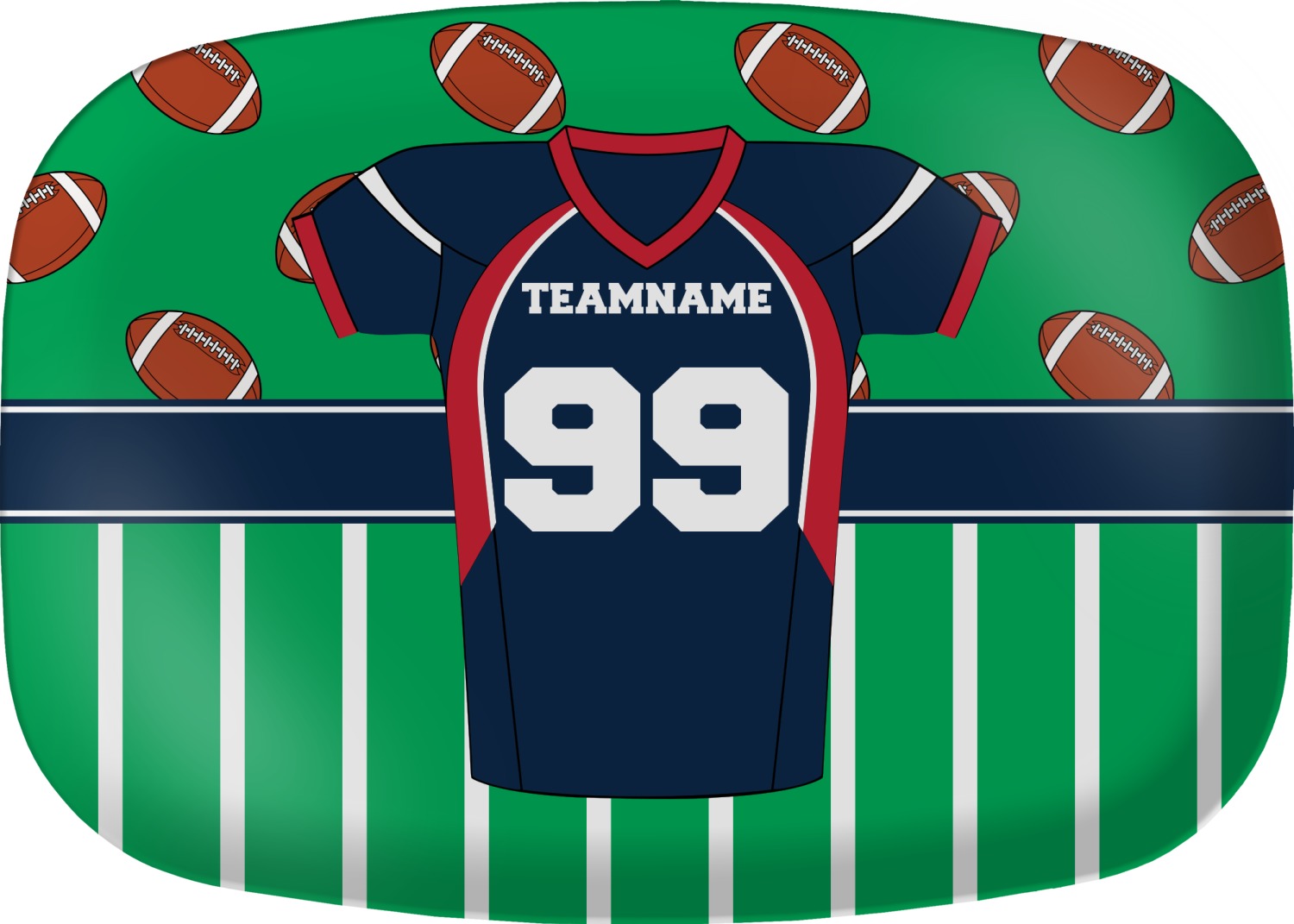 Easily change the navy, white, and blue to your favorite team's colors. The footballs and green field are a fun background pattern, which can be easily changed as well!