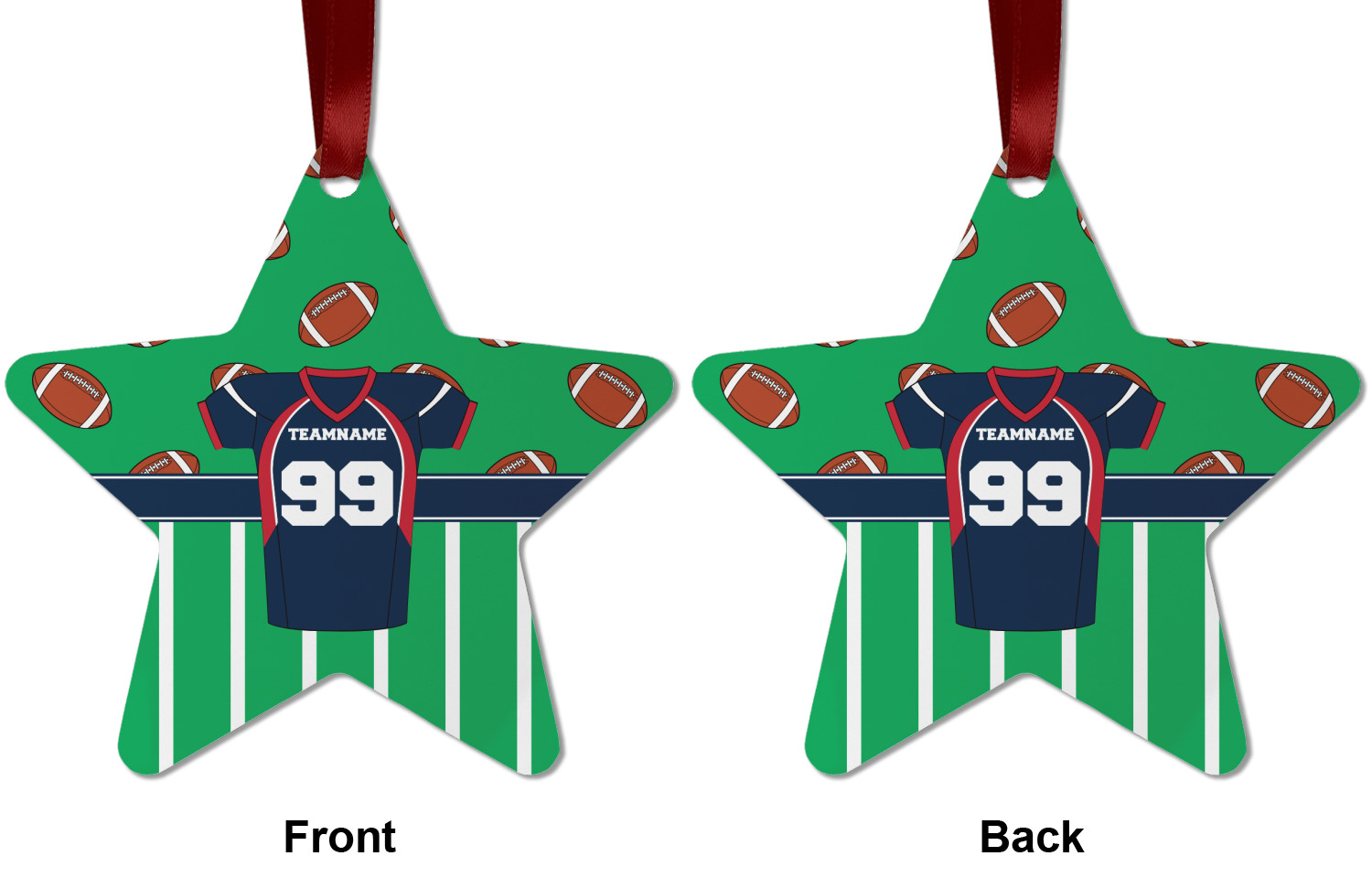 Easily change the navy, white, and blue to your favorite team's colors. The footballs and green field are a fun background pattern, which can be easily changed as well!