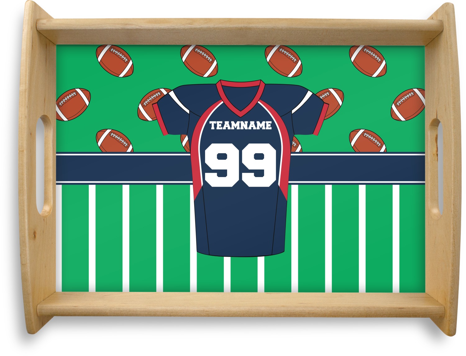 Easily change the navy, white, and blue to your favorite team's colors. The footballs and green field are a fun background pattern, which can be easily changed as well!
