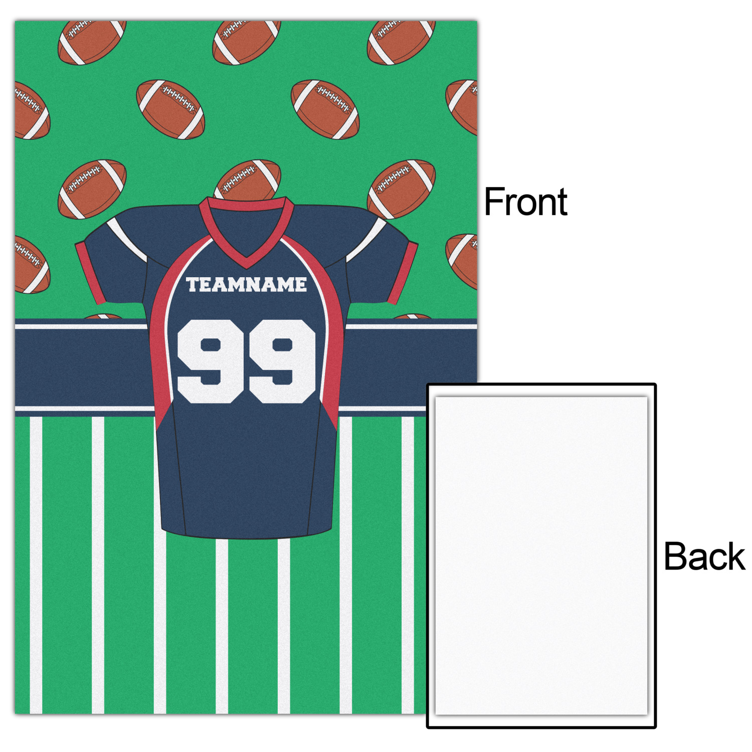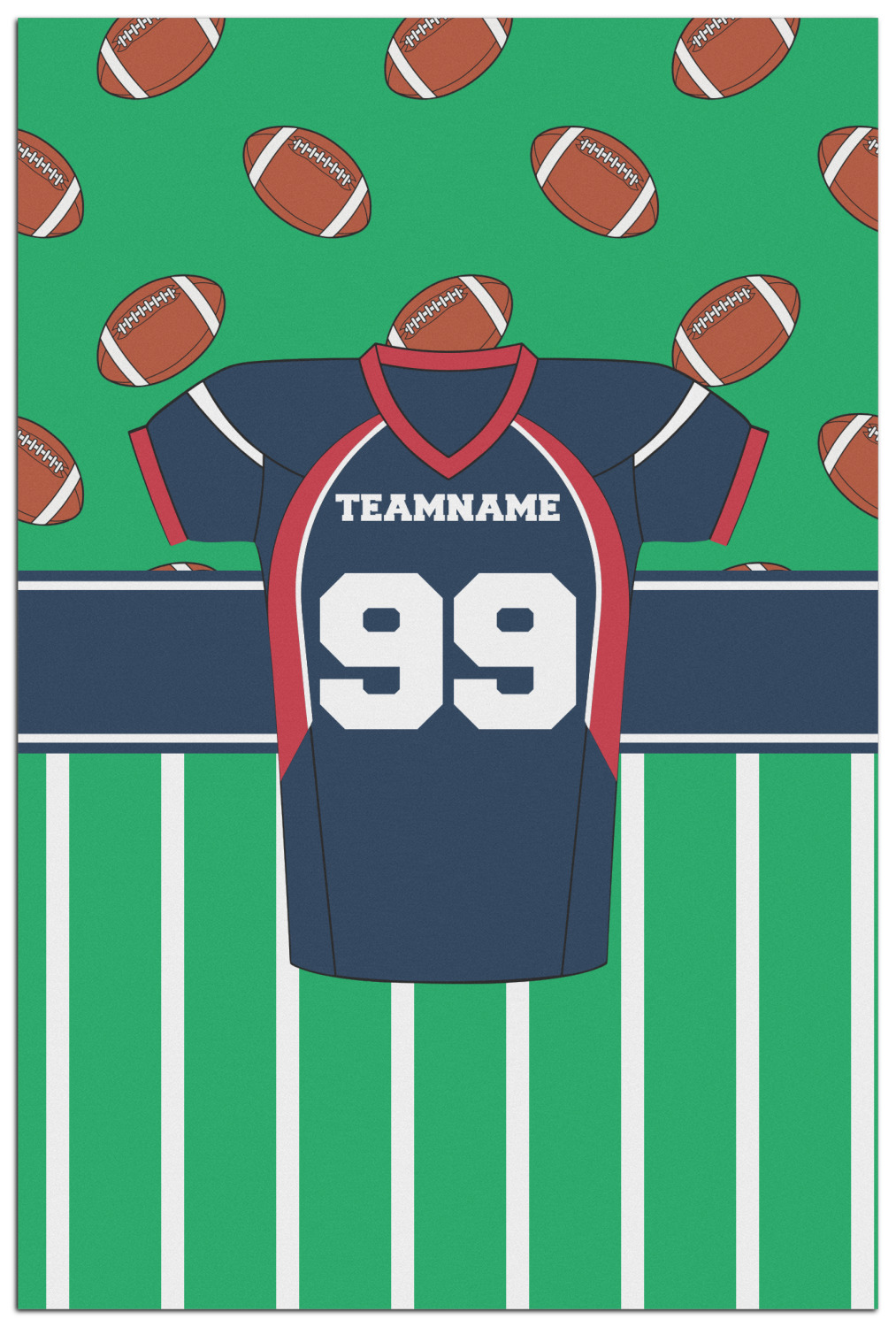 Easily change the navy, white, and blue to your favorite team's colors. The footballs and green field are a fun background pattern, which can be easily changed as well!