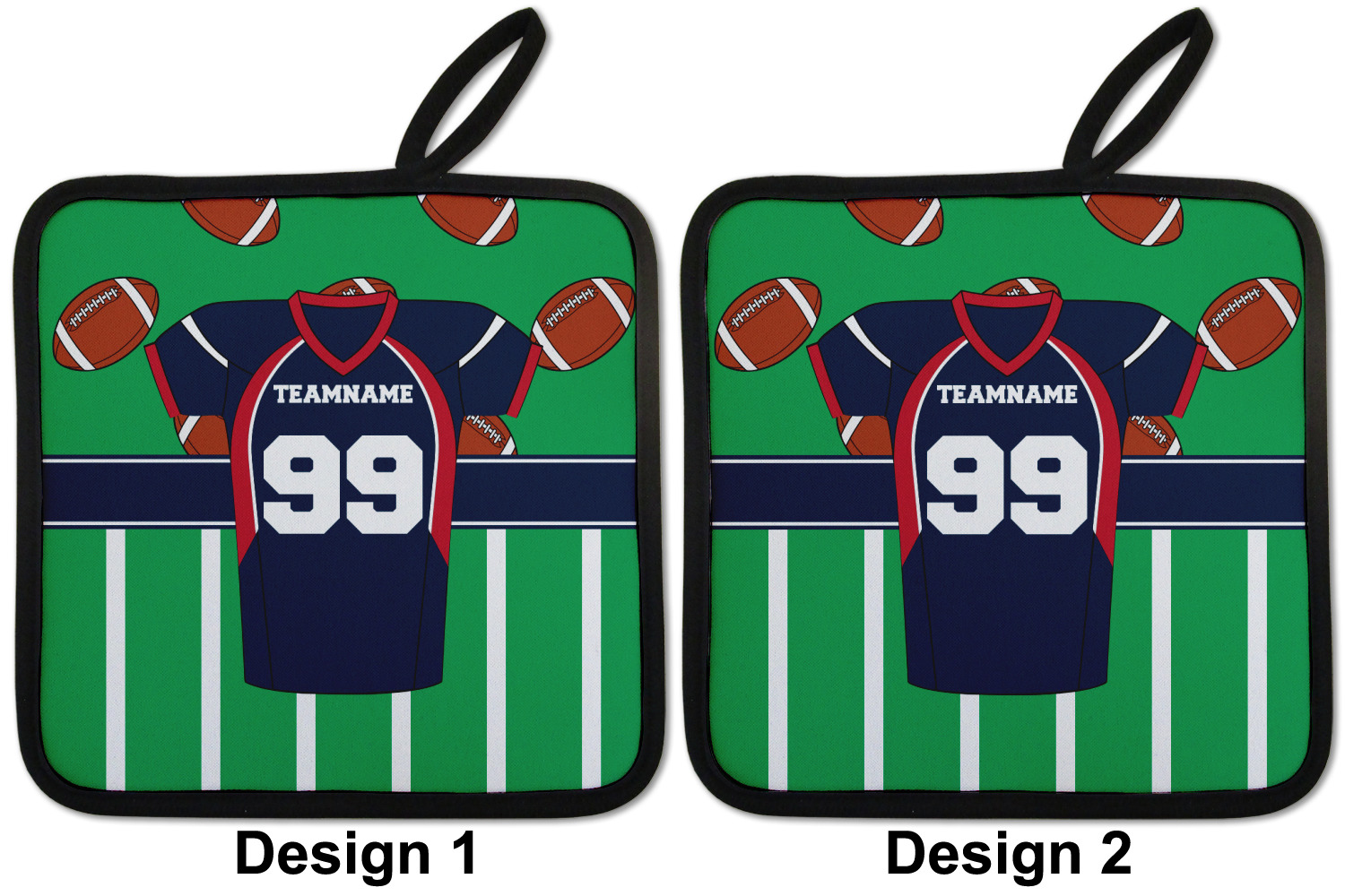 Easily change the navy, white, and blue to your favorite team's colors. The footballs and green field are a fun background pattern, which can be easily changed as well!