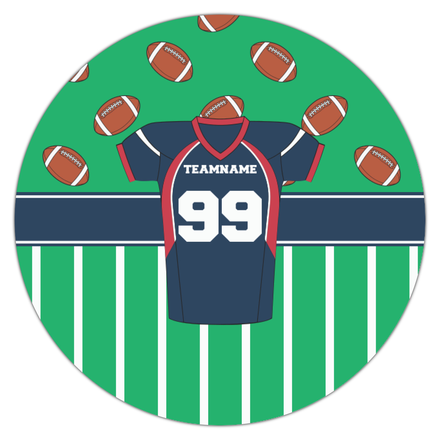 Easily change the navy, white, and blue to your favorite team's colors. The footballs and green field are a fun background pattern, which can be easily changed as well!