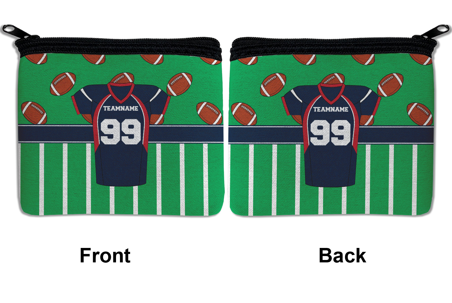Easily change the navy, white, and blue to your favorite team's colors. The footballs and green field are a fun background pattern, which can be easily changed as well!